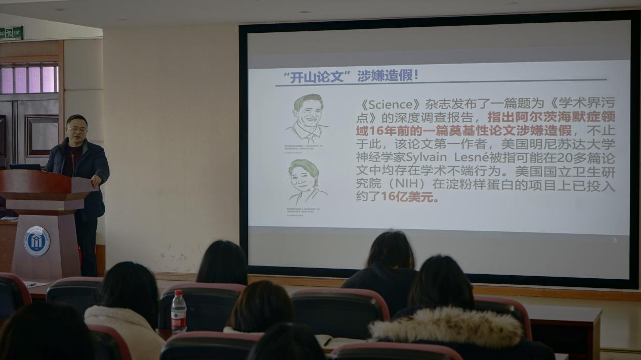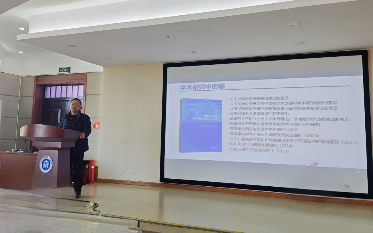 为进一步加强科研诚信建设,营造风清气正的科研环境,3 月 11 日下午,金年会在302会议室组织开展了科研诚信教育学习活动,活动由科研院长林剑教授主讲,金年会全体教职工参加。