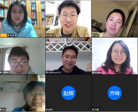 会上,老师们分别从支部与系部建设、在线教学、人才培养等几个主题展开了热烈的讨论。赵辉老师和齐峰老师作为资深教授,向同志们分享了自己开学以来网络授课的心得和教学经验。冯小青老师和朱凌老师就在线教学实施中遇到的问题和具体方案进行了探讨,并给出了自己的建议。彭娟娟老师和刘维树老师从教学科研互相推进的角度介绍了自己近期的成果与进展。田聪书记和隆清琦主任分别对学生的学风建设、毕业、就业等人才培养工作提出了自己的想法。支部特别连线了远在大洋彼岸访学的张洁老师参会。张洁老师克服时差,心系支部,向大家介绍了目前在美国的近况,并表达了自己对祖国的关心。