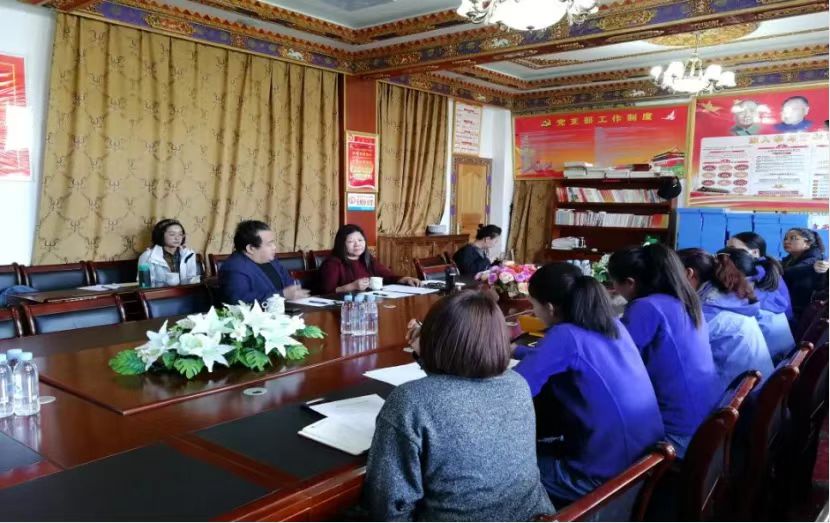李姗泽在拉萨实验幼儿园同老师们交流