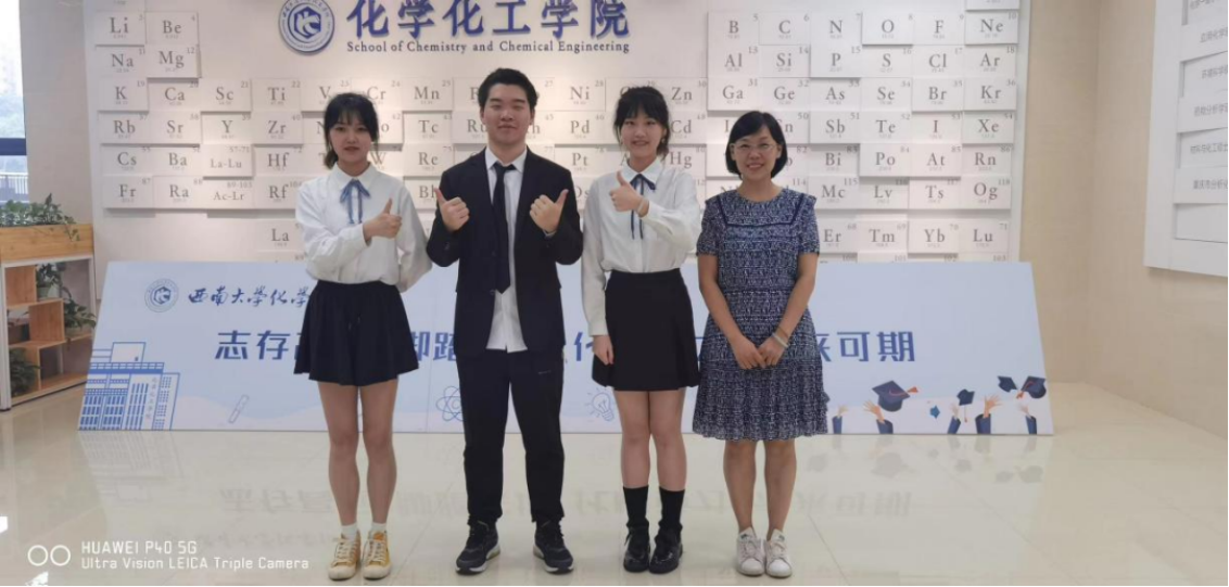 在化学化工学院和参与此项目的学生合影,右一为杨睿