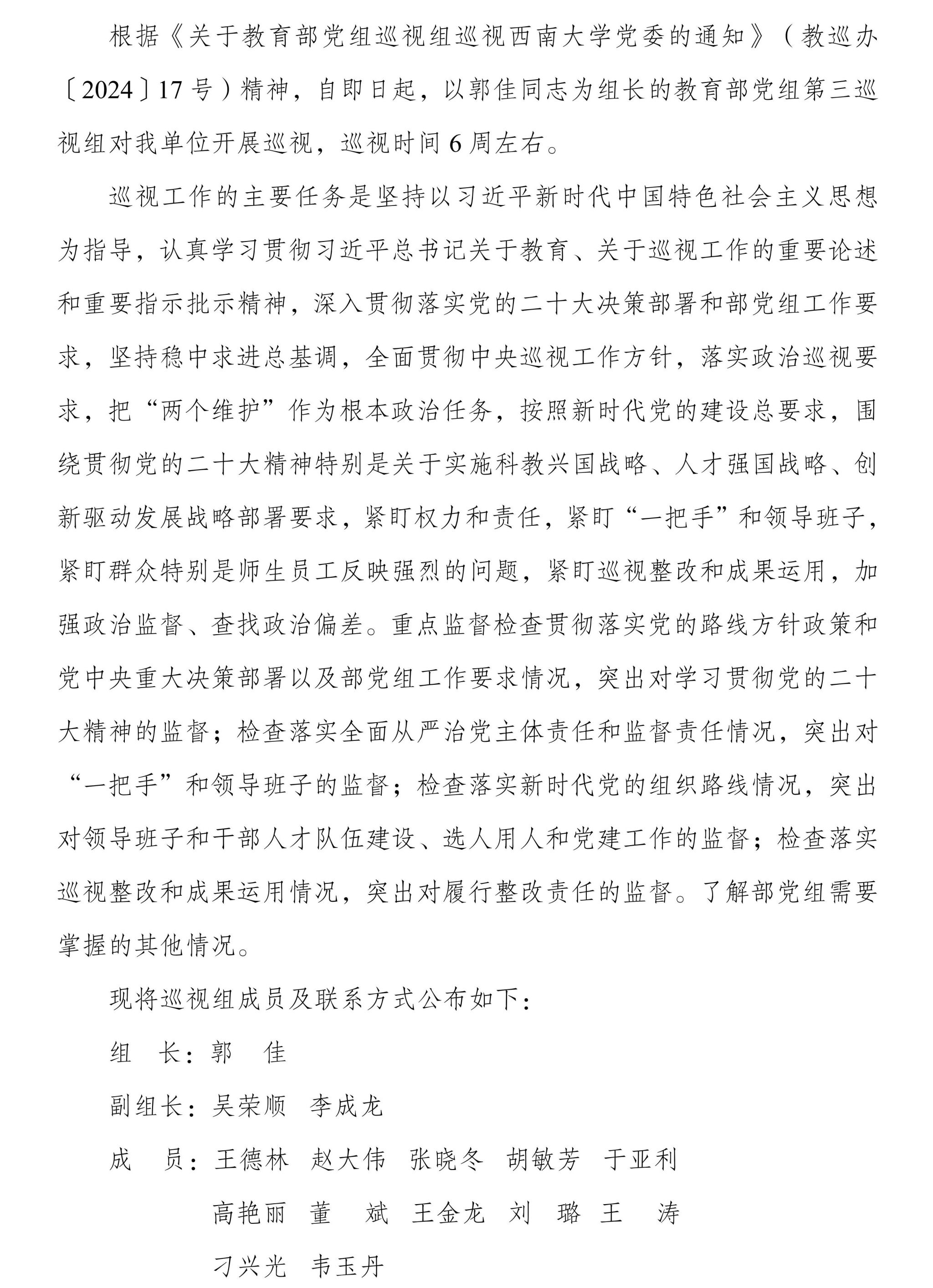 关于教育部党组第三巡视组巡视beat365在线唯一官网登录党委的公告
