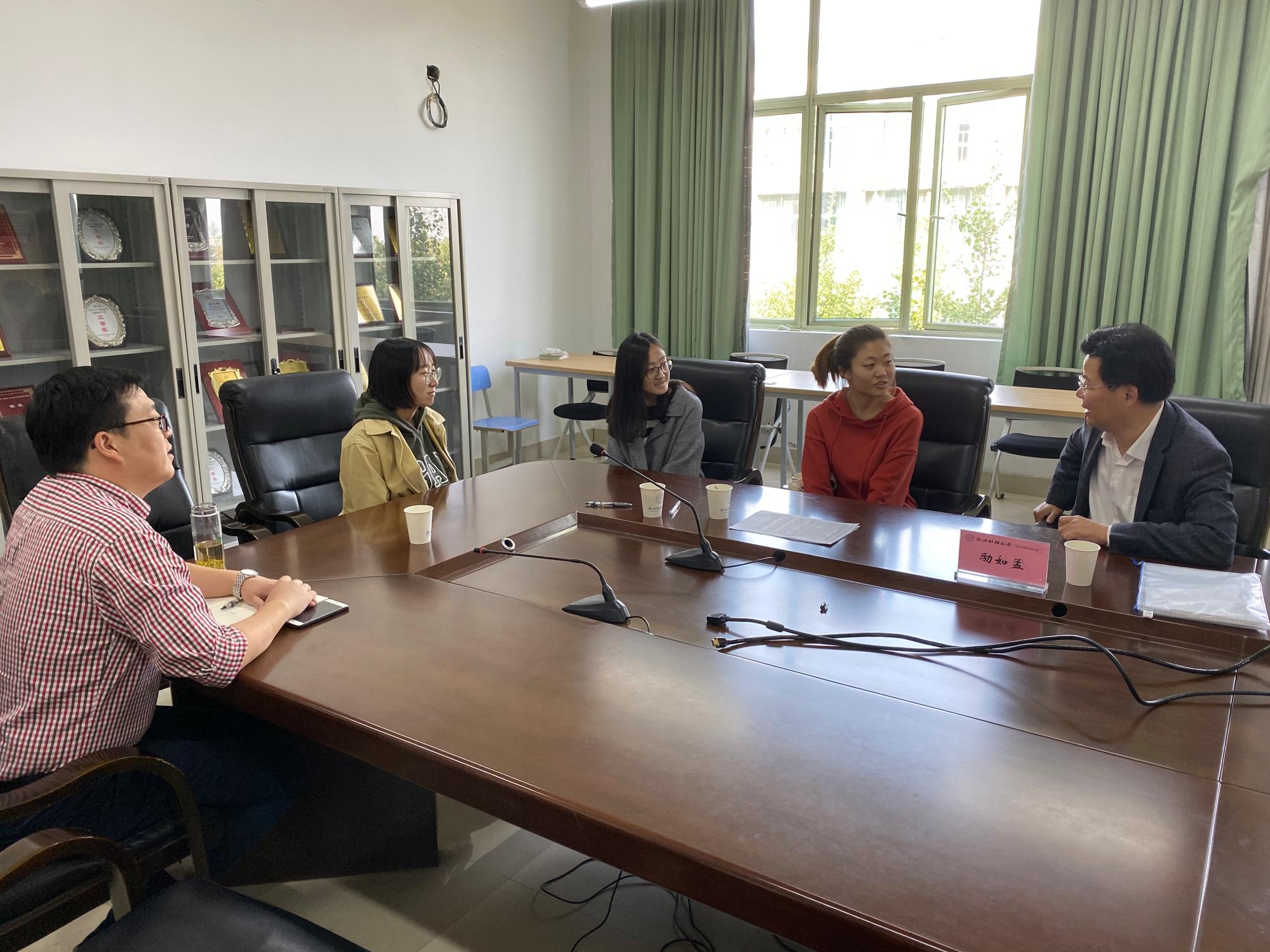 24日中午,励如孟副校长一行于学院9404会议室,座谈看望联系寝室,与寝室郝朝廷、李虹萱、江玉玺三名同学进行了愉快的交谈。励校长详细询问了各位同学的学习情况和生活情况。详细询问了三位同学的近况,就三位同学的考研学校、专业等准备情况进行了建议,为三位同学做了较为明确的规划。