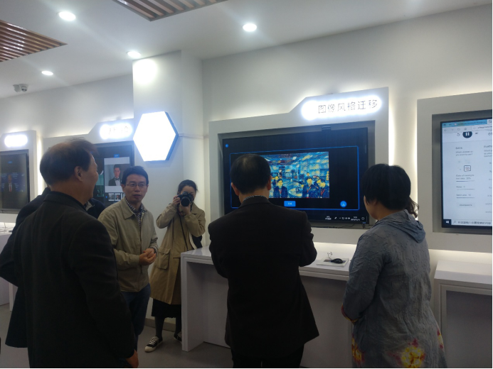 金年会计算机系系主任刘亚楠副教授向各位专家介绍人工智能体验园的组成情况,在机器感知区域,介绍了语音识别与合成、人脸融合与图像风格迁移等计算机视觉与自然语言处理的相关技术。