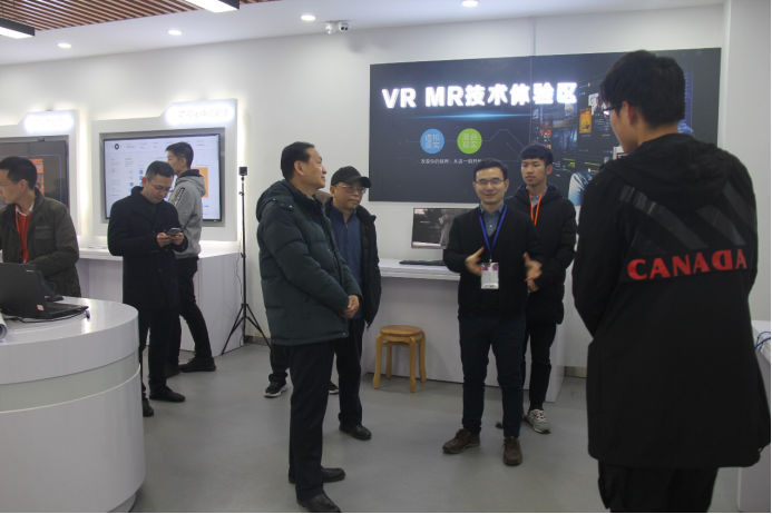 在互动编程区,人工智能协会的同学门向嘉宾一行介绍了人工智能实验箱的功能,并演示了“年龄检测”实验项目。陈远高教授介绍了金年会目前开设的人工智能微专业的概况,表示互动编程区有力的支持了微专业相关课程的实践活动。