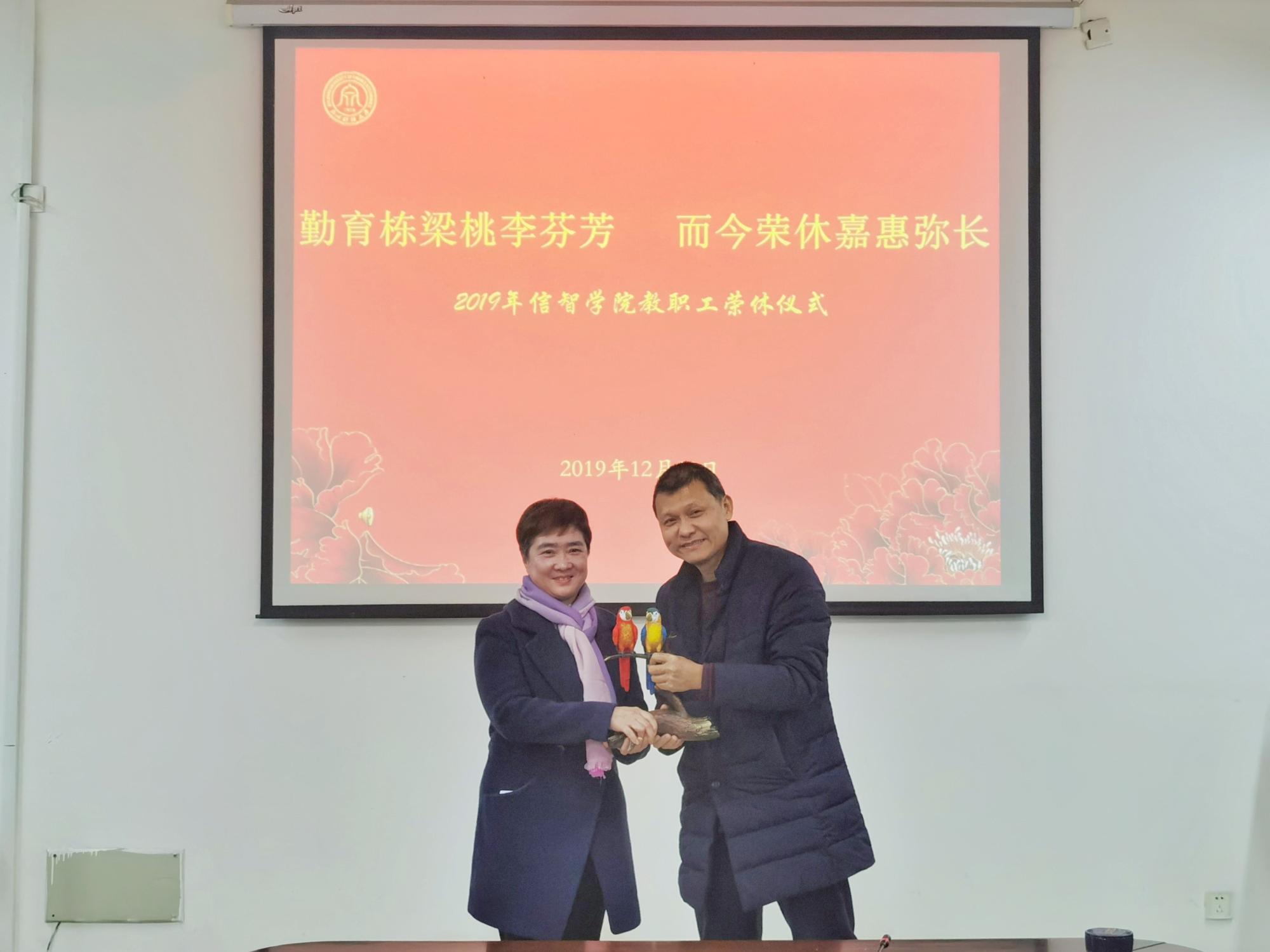 12月24日,信息管理与人工智能学院在404会议室为王衍、冯睿两位老师举办“勤育栋梁桃李芬芳,而今荣休嘉惠弥长”荣休仪式。信智学院院长张文宇,副院长张帅,学院各系部主任、各党支部书记共同出席参与,荣休仪式由学院党委副书记陆颋浩主持。