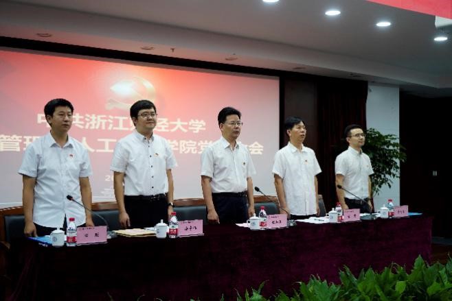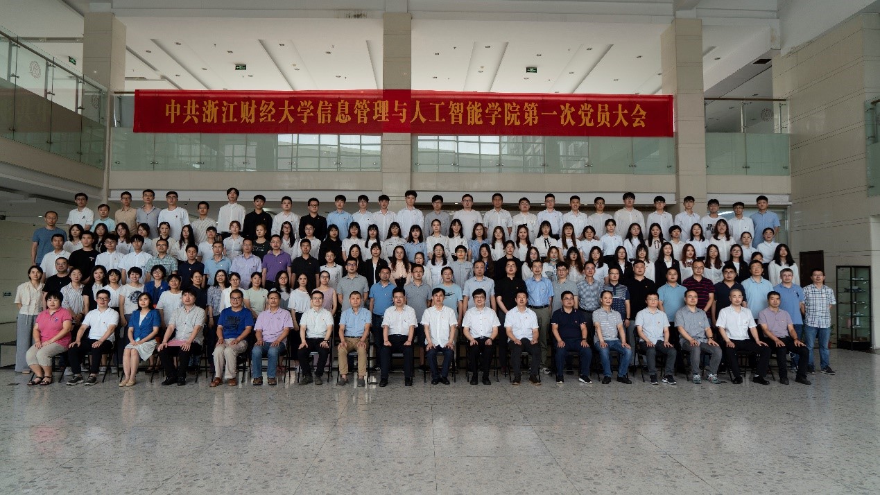 7月8日下午,中共金年会jinnianhuicom信息管理与人工智能学院第一次党员大会在学术第四报告厅顺利召开。校党委委员励如孟、校党校办干部贺文凯、学院领导班子成员、民主党派代表、群众代表以及全院师生党员等参加了大会。大会由学院党委副书记田聪主持。