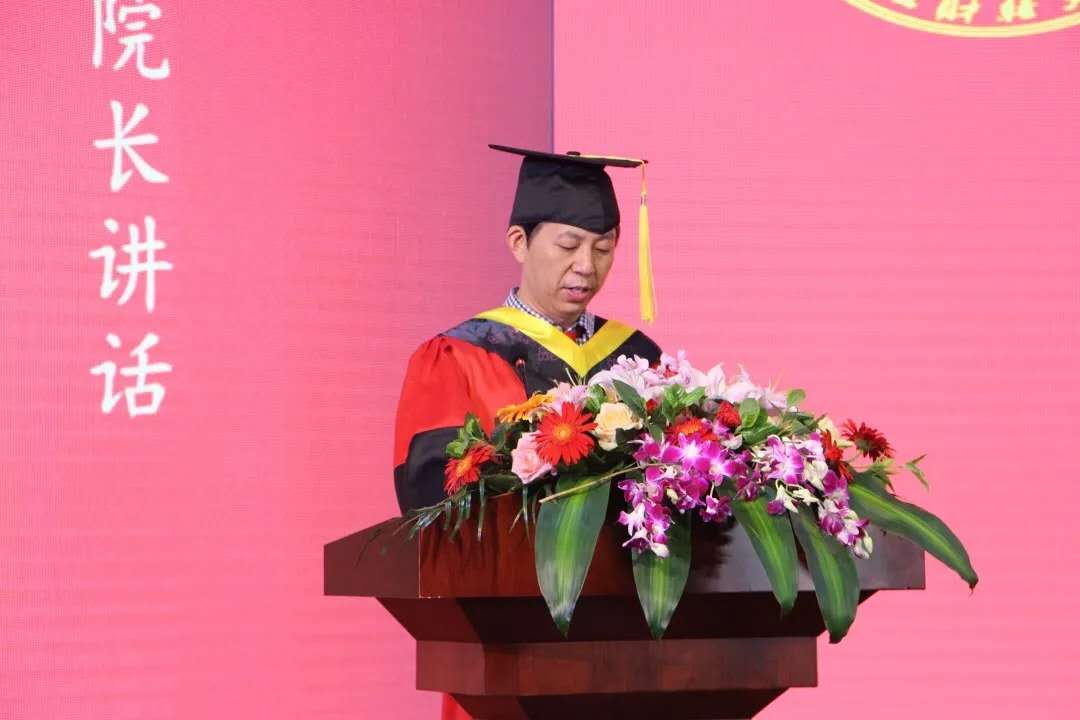 随着国歌奏唱的结束,典礼正式开始。首先,张帅院长进行了致辞。他肯定了各位本科毕业生的努力成果,表达了对大家的依依不舍与衷心祝福,并宣布2020届毕业生们正式毕业,他们圆满结束了自己的大学四年生活。