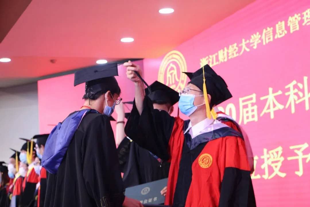紧接着,金年会进行了学位授予仪式。仪式上,老师们为每位毕业生颁发了毕业证书,并为他们拨穗正冠,热烈祝贺他们顺利毕业,祝愿他们在未来能大展宏图,为母校争光。毕业生们也纷纷表达了对自己谆谆教导四年的老师们的感谢与祝福,并进行了合影留念。
