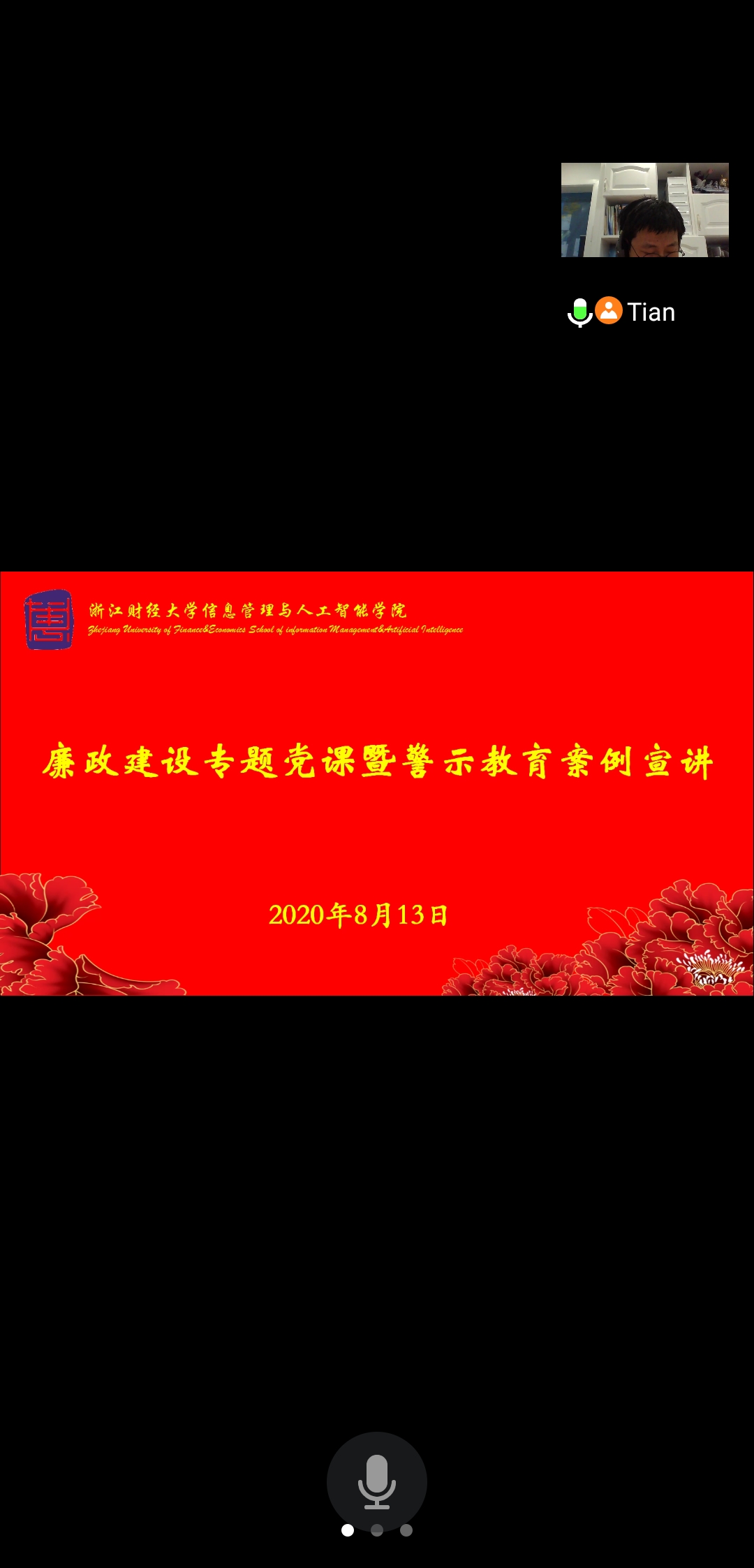 8月13日,信智学院纪委书记田聪给学院纪委班子上党课,传达省纪委有关会议精神和校纪委警示教育会议精神。信智学院纪委班子全体成员参加了党课学习。