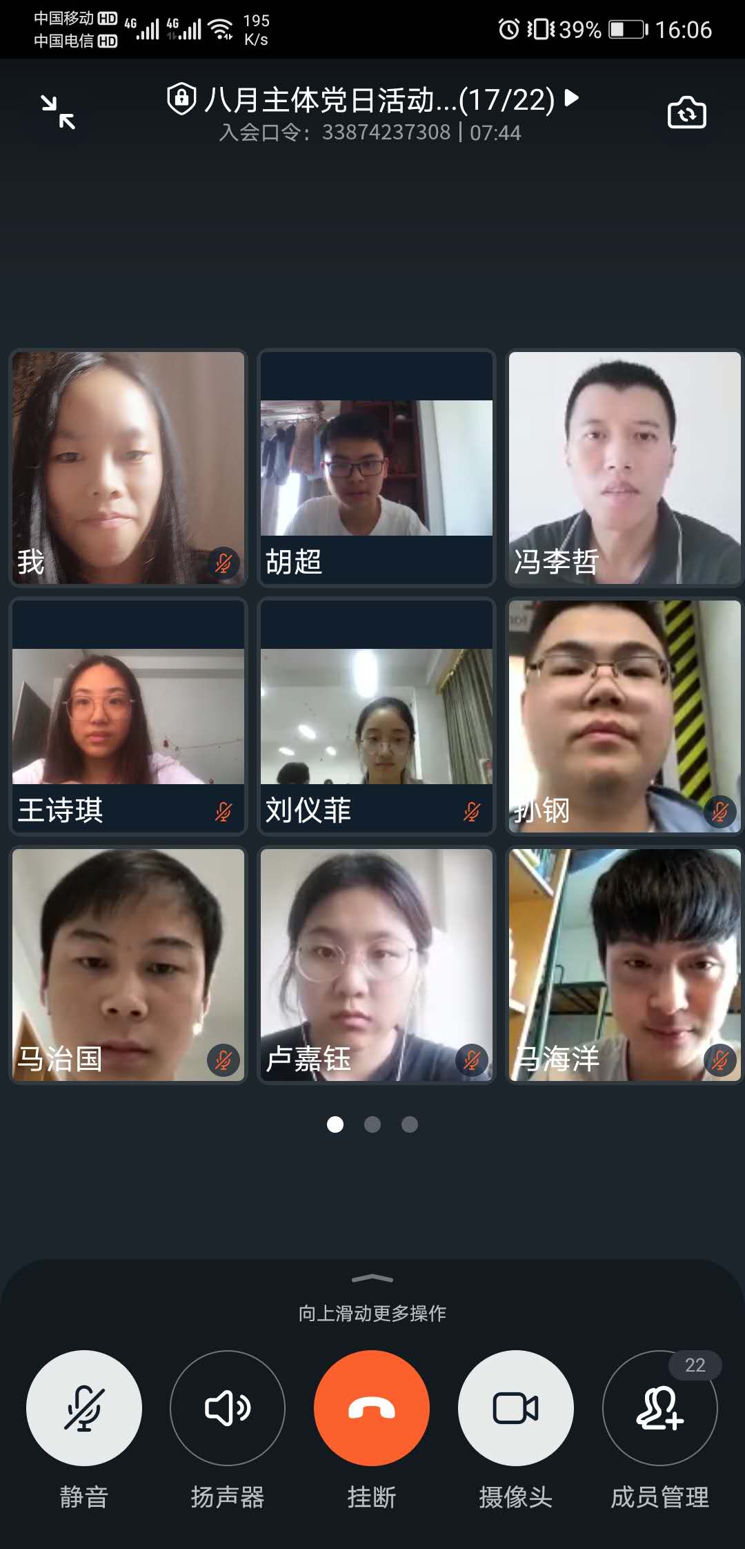 学生党员胡晨芳提到:“今天的党课,我认识了许许多多主动请缨前往武汉抗“疫”的党员和入党积极分子,身为医护人员,他们是平凡的,身为抗“疫”一线的他们,却是伟大的。党旗飘扬,筑牢红色防火墙,面对暴发增长的病患人数,面对综合病症较多的病患,他们克服困难,迎难而上,“少喝水、少吃东西、少上厕所”,这种坚强的意志力和无私的奉献精神是我们中国共产党人应该具备的;把人民群众的利益放在第一位,真正体现了全心全意为人民服务的党的宗旨。一个个主动请战奔赴武汉的共产党人让我透过屏幕仿佛能看到共产党人携手在疫情面前筑起的无形却坚固的保护墙,将可怕的病毒阻挡在外,我们终将打赢疫情防控这场硬仗。”
