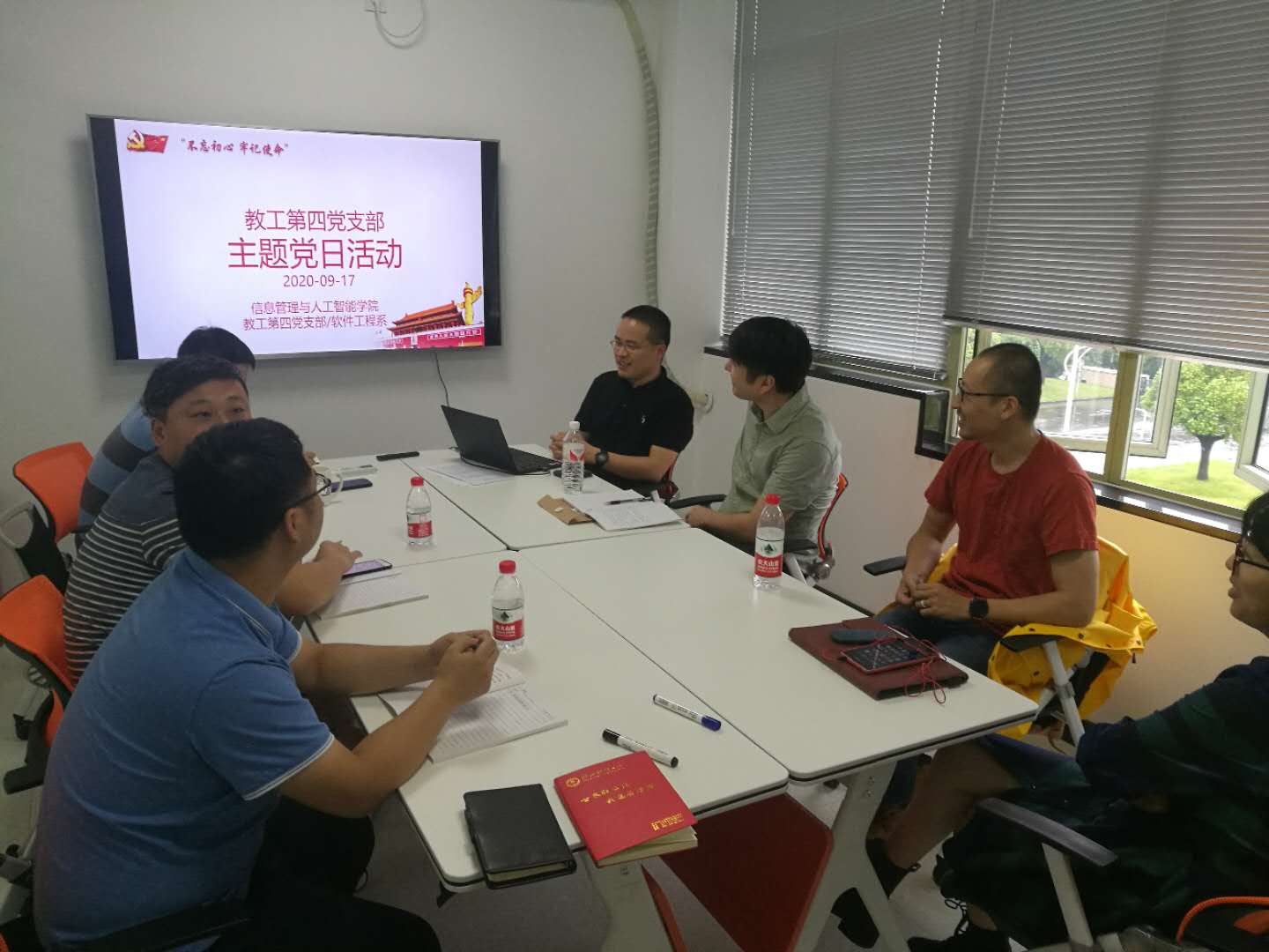 9月17日,信智学院教工第四党支部组织全体党员教师在9301A开展“开学第一课”主题党日活动,认真学习省委书记袁家军同志在省委党校2020年秋季开学典礼上的讲话精神。