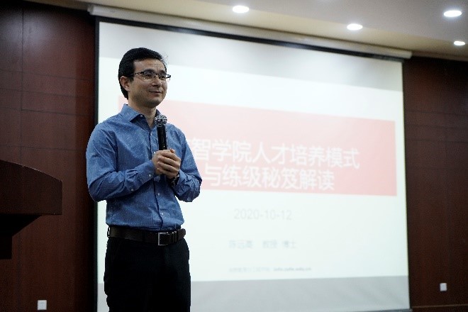 10月13日下午,为帮助20级新生了解大学学习要求和学校学分制培养方案,由院党委副书记田聪主持、副院长陈远高主讲的新生学分制培养方案解读会在学术第一报告厅举行。陈远高副院长介绍信智学院人才培养模式、导师体系、专业特色以及大类分流、专业准入、准出等教学管理制度,鼓励新生积极与导师沟通交流,积极参与学科竞赛和创新创业实践活动,培养自主学习的习惯,规划好四年大学生活。