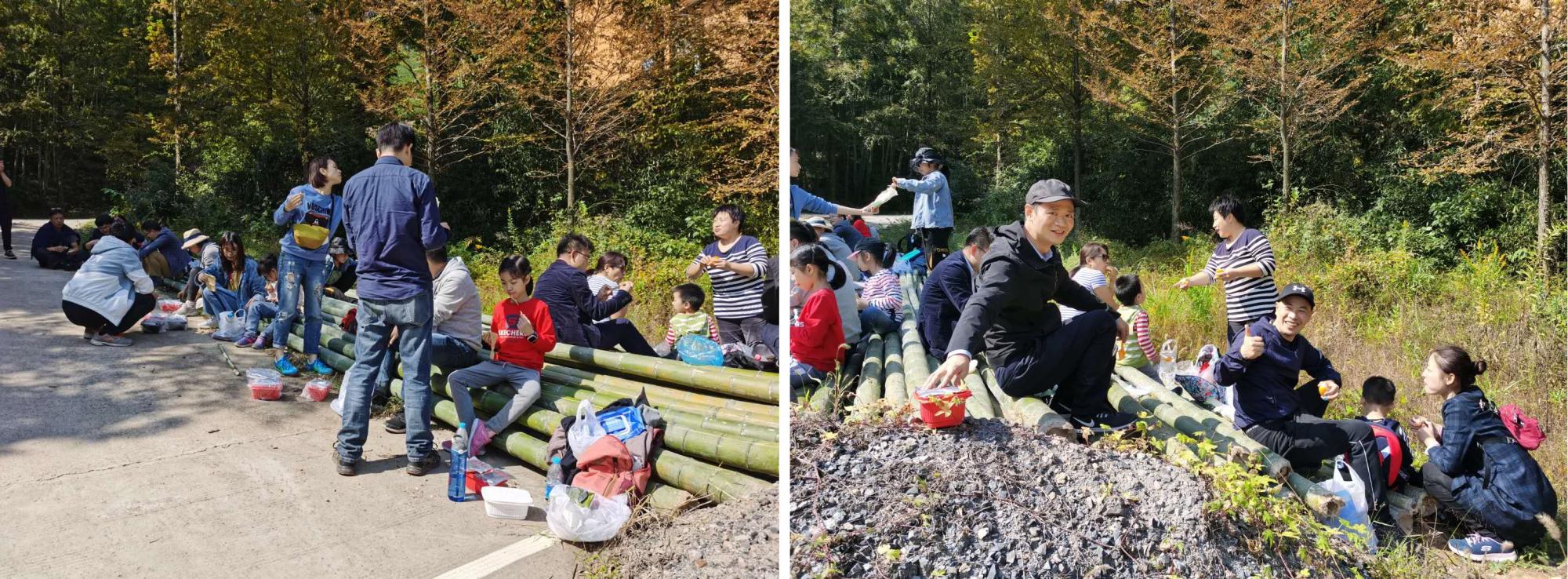 中午时分,老师们在竹林山道边席地而坐,一边休息一边享用简便的午餐,徒步的劳累并没有影响到老师们愉悦的心情,反而让大家更加兴致高昂,抛开平时工作中的规矩束缚,回归自然感受自然。