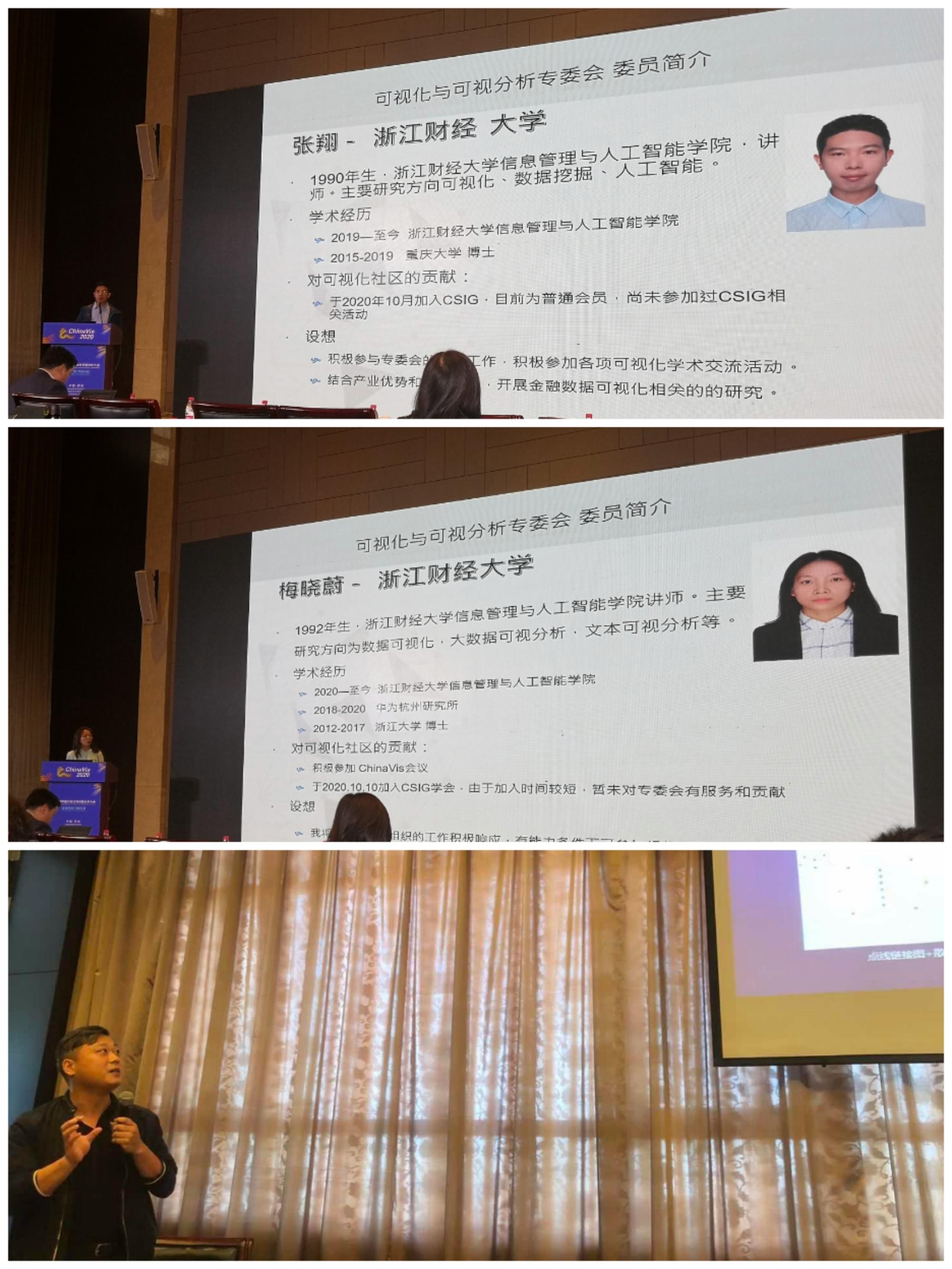 金年会张翔、梅晓慰老师向可视化与可视分析专业委员会提交了自己的新进委员申请,并在会议上向各位委员介绍了自己的研究方向和已有相关成果。刘玉华老师在“网络与图”专题会议上宣读了大会录用的“多元网络可视分析综述”论文,并与现场同行专家进行了交流互动。