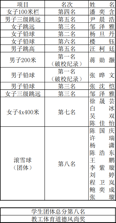 开幕式上,金年会师生英姿飒爽、步伐铿锵、气宇轩昂、锐不可当。赛场上,我们看到了短跑选手的爆发、长跑选手的毅力、跨栏选手的冲劲、跳高跳远选手对高度长度的追求,他们勇于挑战极限,创造独属他们的辉煌。我们也被趣味运动轻松愉悦的氛围所感染:选手们齐心协力,团结互助,发扬了合作进取的团队精神。同时,金年会教职工也不落下风、奋勇拼搏,为学生运动员们做了榜样。