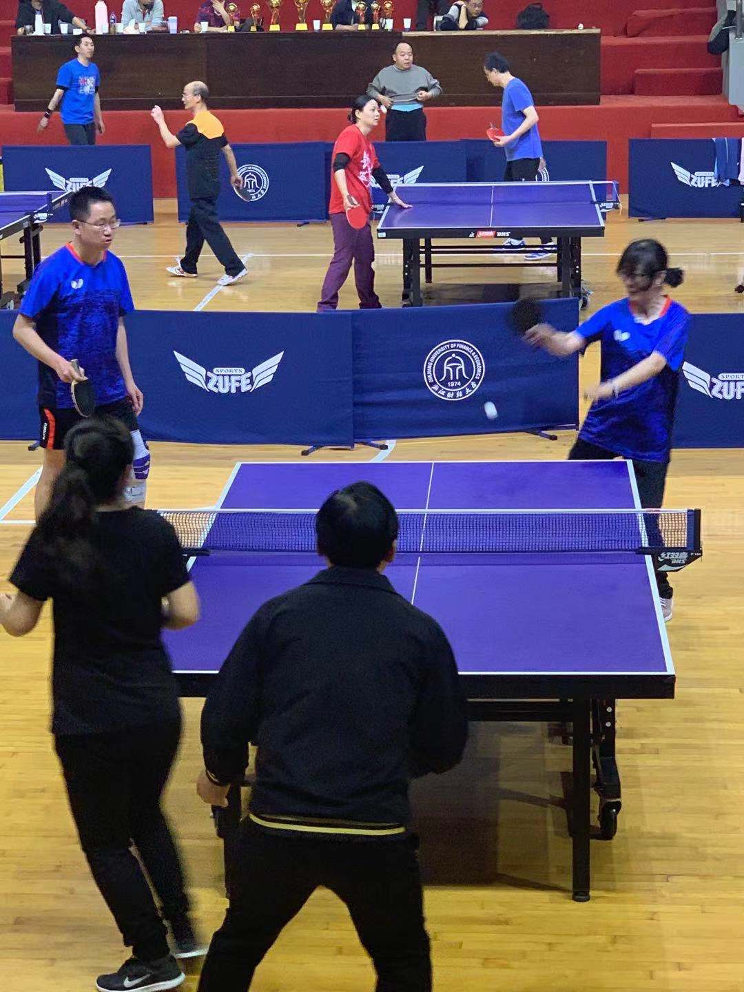 信智学院分工会组织教师参加校2020年教职工乒乓球混合团体赛,经过一整天的鏖战,学院分工会取得历史性突破,首次获得乒乓球赛团体季军。