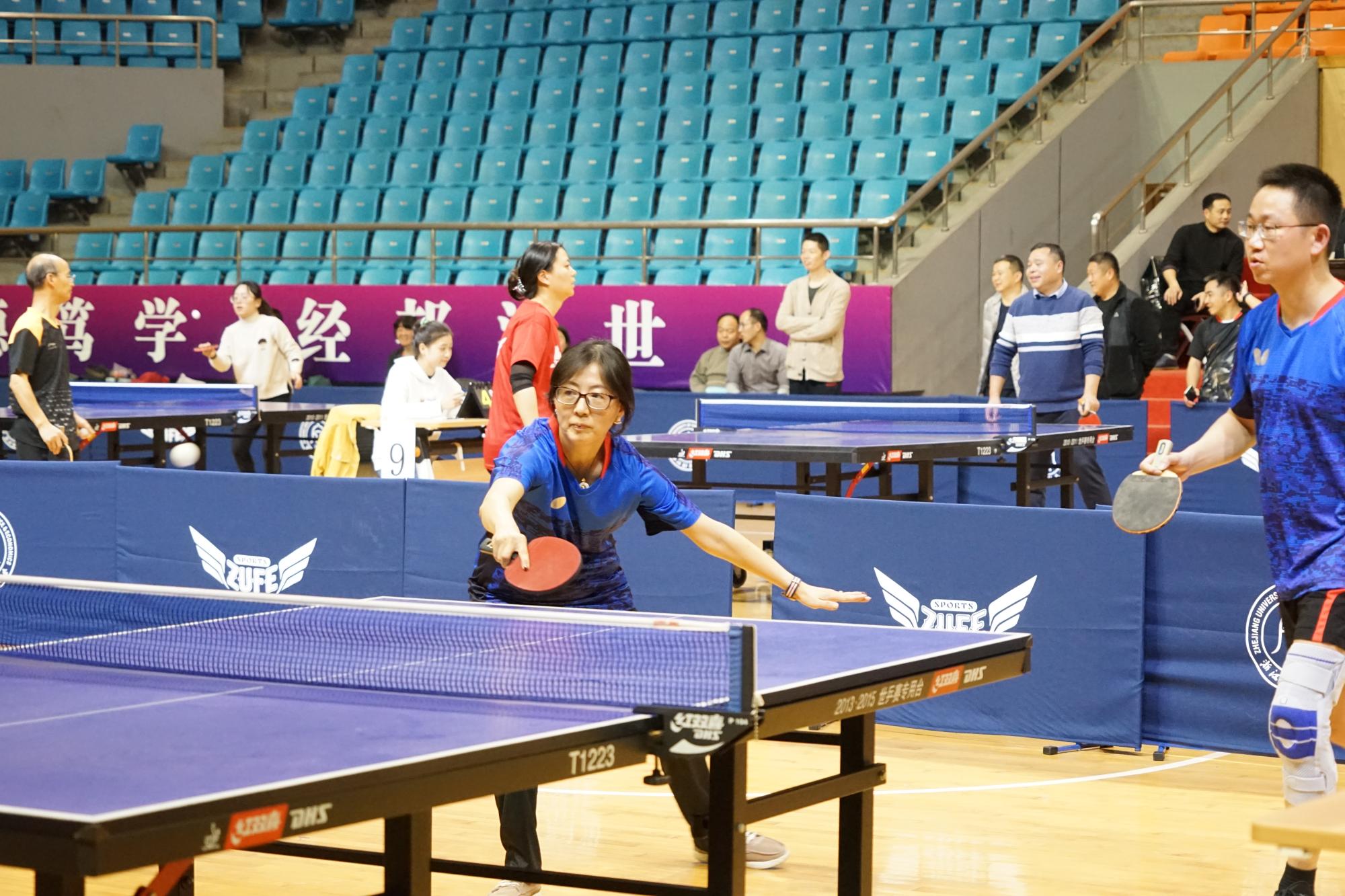 赛前分工组积极动员教师参加比赛,在亮丽的队服上印上学院的LOGO和名称,期望能成为赛场上一道风景。正式比赛日队员早早到场,积极热身投入战斗。教练与队员们细致考量队手、机智排兵布队,赛场上队员们挥洒汗水,使出千般绝技发球抢攻、正手提拉、反手推挡,关键时刻队员们团结合作,大家众志成城,关注场上每局比赛,每一分的争夺,呼喊加油,鼓劲助威!终于我们创造历史,夺得季军!