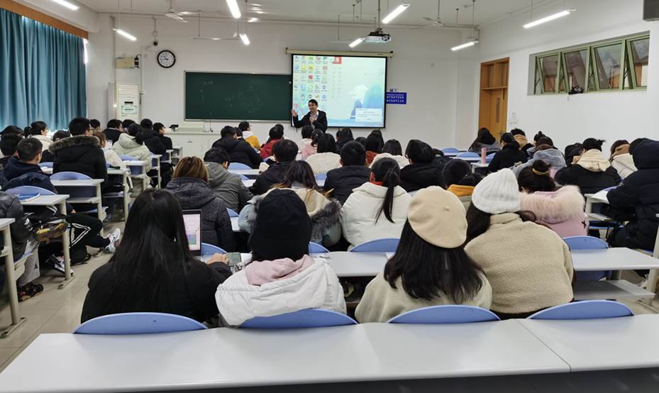 本次活动由杭州冉优电子商务运营实践基地的企业负责人林志主持,江佩涛主讲。江佩涛首先从自身大学时期的创业经历谈起,讲到近期自己参与的电子商务创业项目情况,引导学生正确认识当前电子商务的发展形势、更新电子商务创新理念,引起了学生的强烈共鸣,也加强了学生对电子商务的理解。