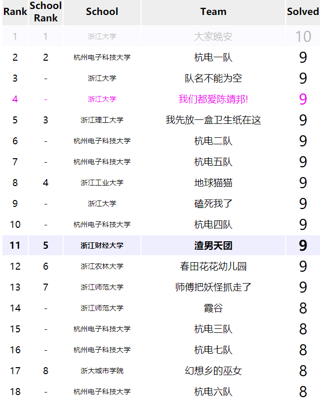 第十八届浙江省大学生程序设计竞赛的获奖如下: