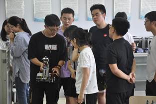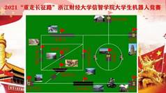 比赛场地模拟红军长征路线,由同学们以团队形式根据“长征”线路设计程序代码植入机器人后,机器人从“瑞金”出发,一路历经“血战湘江”、“遵义会议”、“四渡赤水”、“巧渡金沙江”、“强渡大渡河”、“飞夺泸定桥”、“爬雪山”、“过草地”等重重考验,最终抵达“延安”。正如长征路途的艰难险阻,本次比赛也存在让机器人按照线路精准爬坡、绕圈、调头等难题需要解决,任何环节的出错,都可能导致“功亏一篑”,比赛中,选手们克难攻坚,最终“延安”会师。