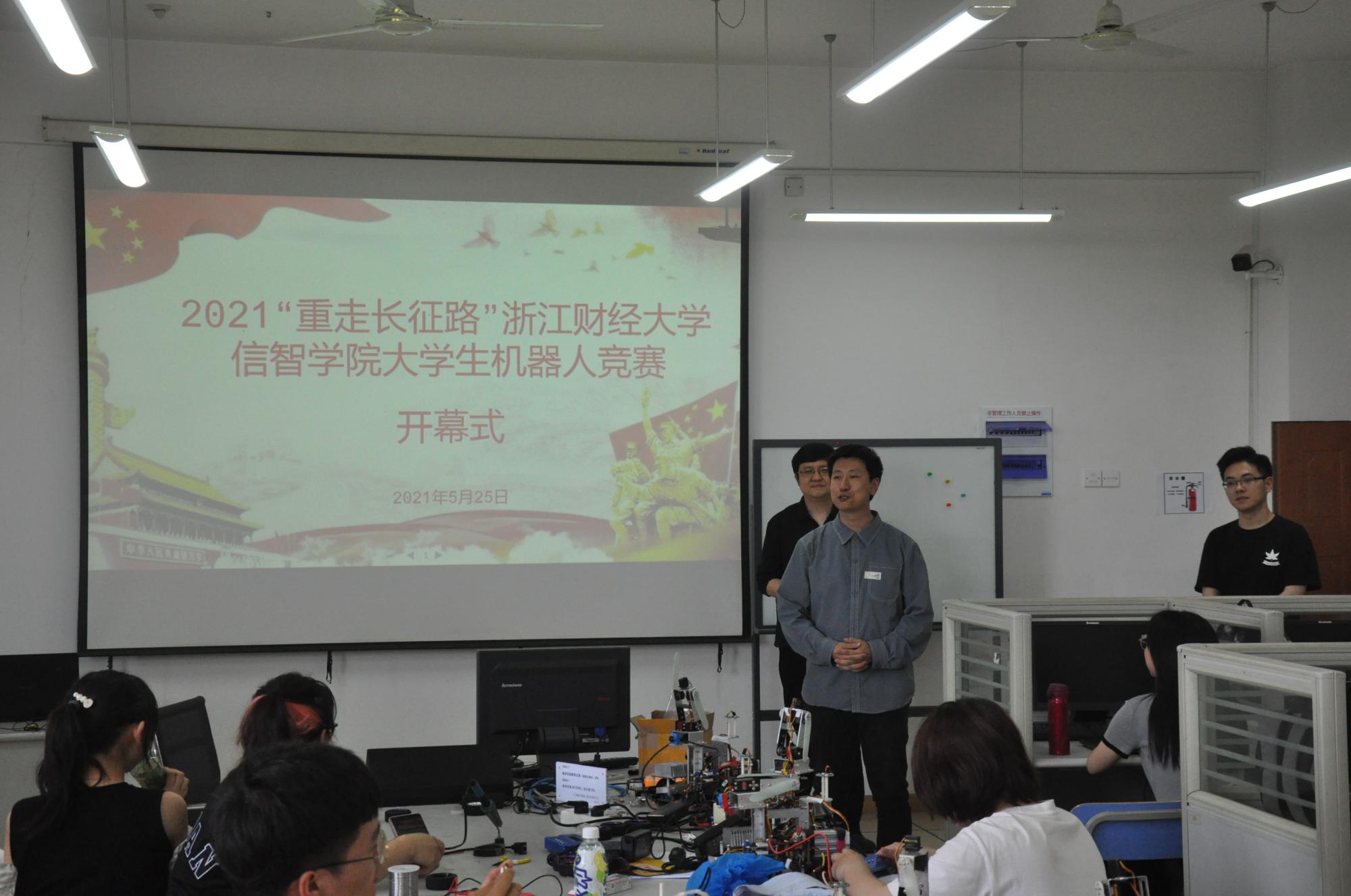 经过前期紧锣密鼓的筹备,5月25日下午,信智学院“重走长征路”主题机器人大赛于信智学院楼3楼机器人竞赛场顺利举办。学院党委书记徐奇伟、学院党委副书记田聪及潘峰、刘芳、钟文、姜海银、洪宝华等老师出席比赛并担任评委。大赛共吸引了来自信智学院、数科学院、会计学院和经济学院等全校20支队伍近60余名选手参赛。