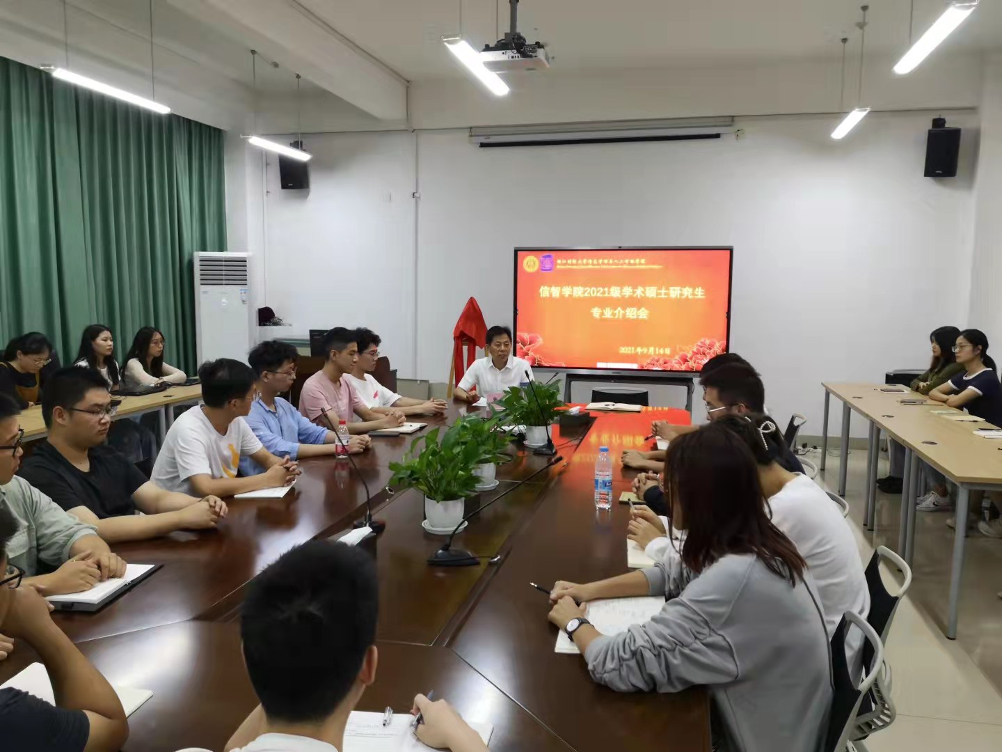9月14日下午,学院院长张帅为2021级管工硕士研究生上了开学第一课,帮助研究生新生尽快转变角色,及时适应研究生学习生活节奏,迅速进入专业学习状态。信智学院2021级30名管工专业硕士研究生新生现场认真聆听了院长讲授的精彩课程。