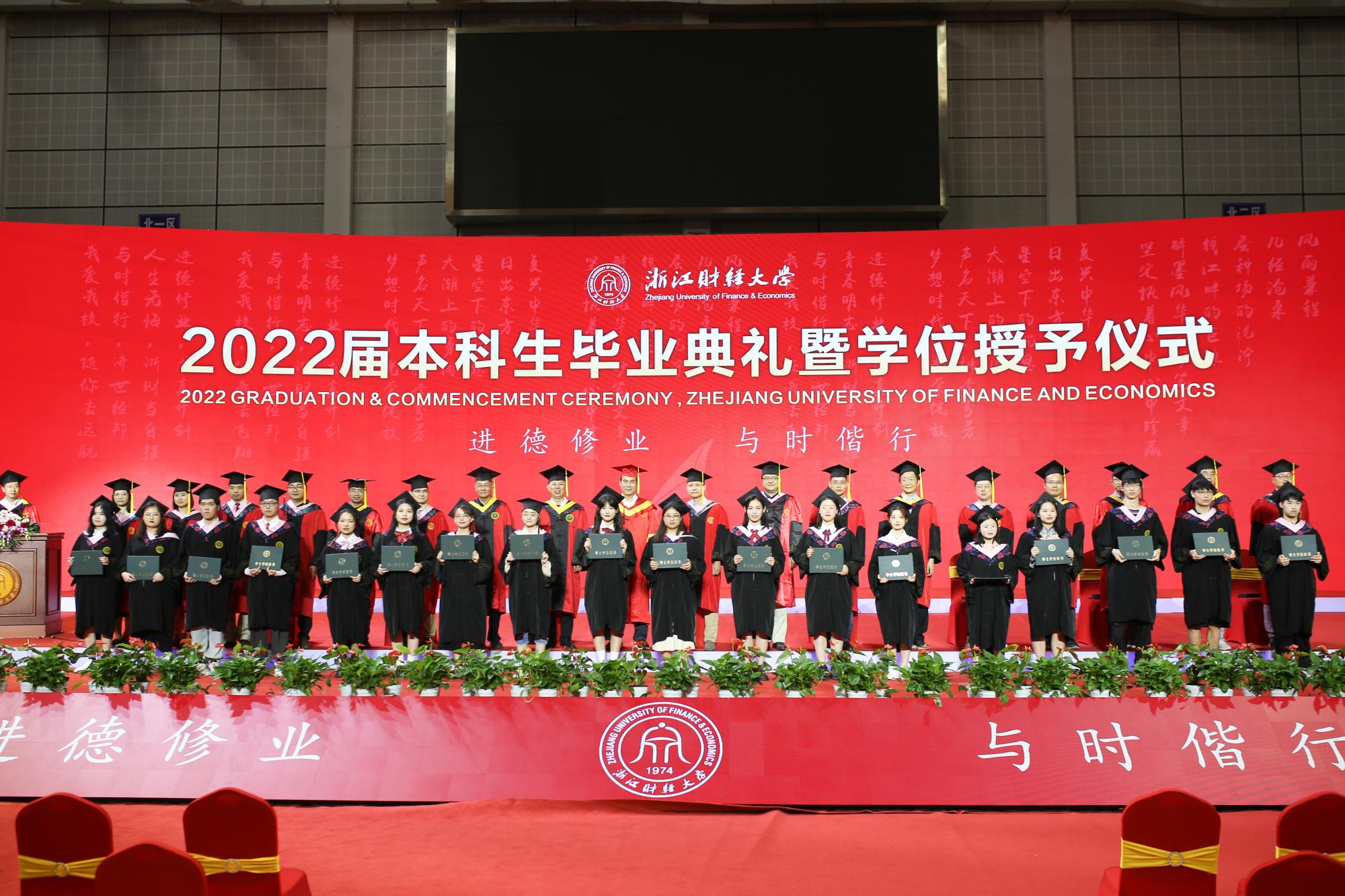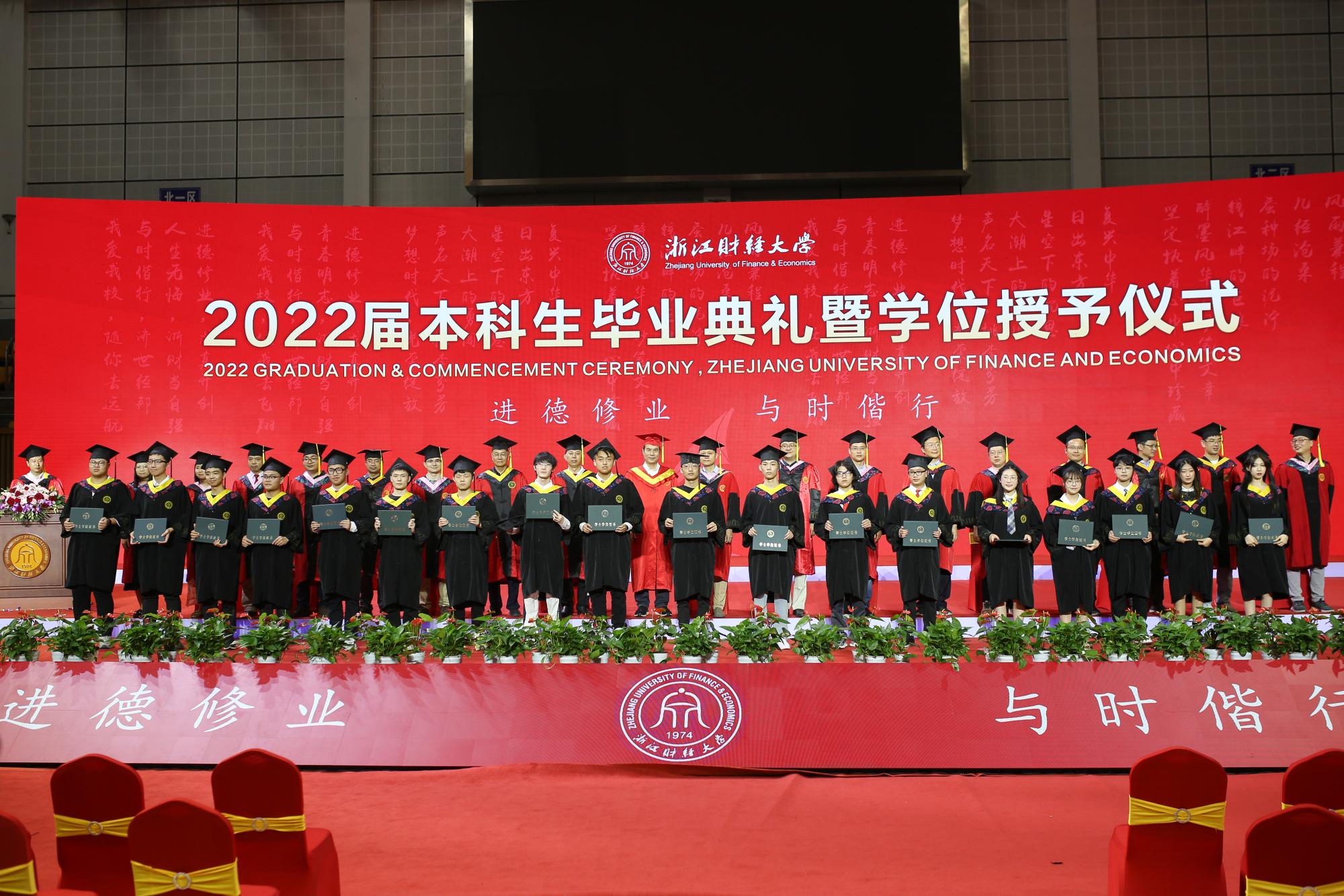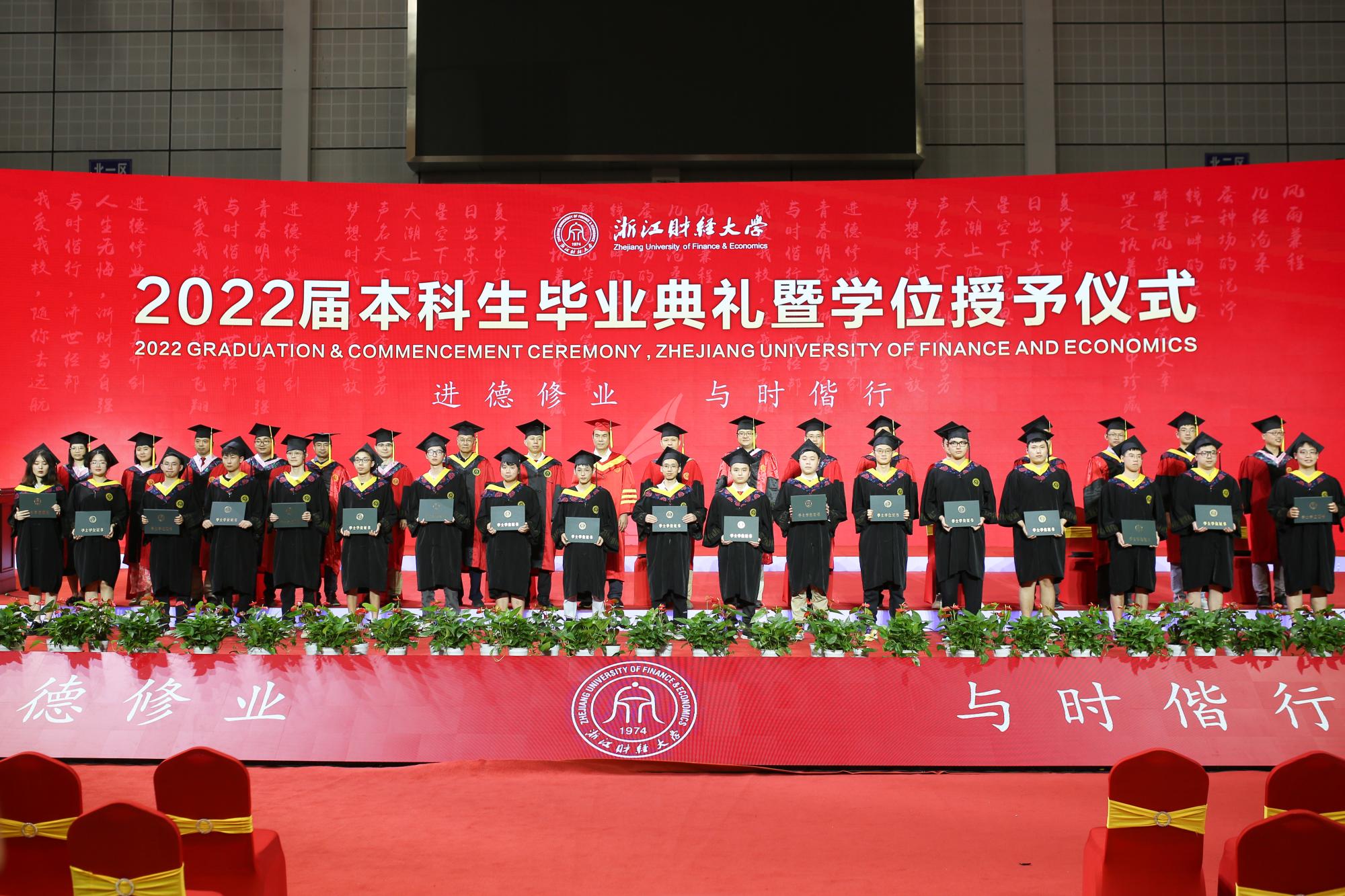 随后,毕业生依次上台接受老师颁发的学位证书,导师们为毕业生逐一拨穗正冠,授予学位,合影留念,衷心祝贺他们顺利毕业,祝愿他们在未来前程锦绣,为母校争光。毕业生们也纷纷表达了对母校老师们的感恩与祝福,表示将不负母校的辛勤培育和殷切期望,践行“进德修业,与时偕行”的校训,积极投身国家建设,努力成为有用之才。
