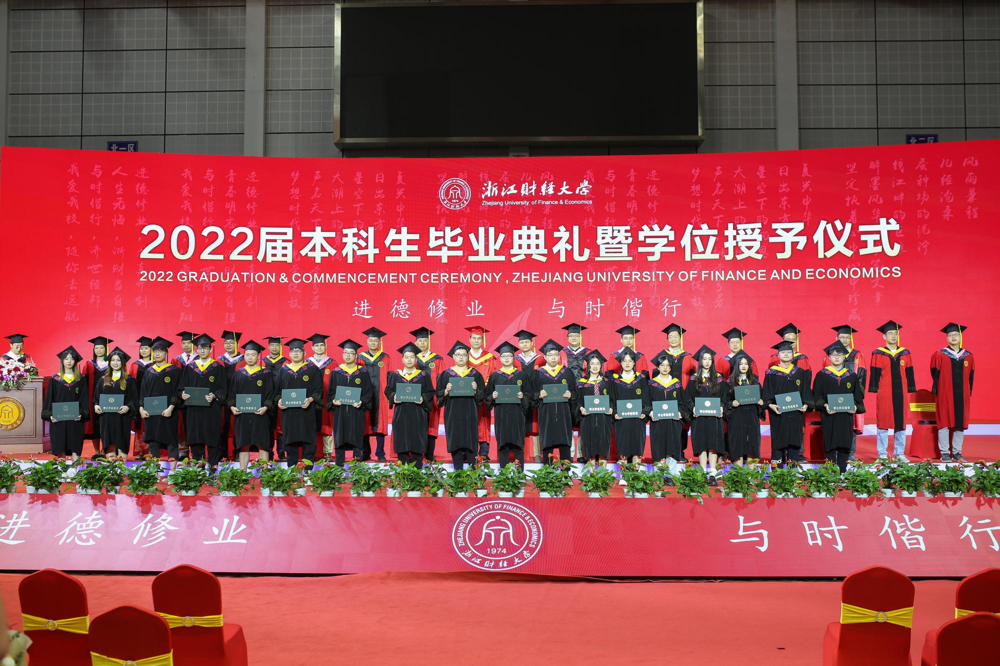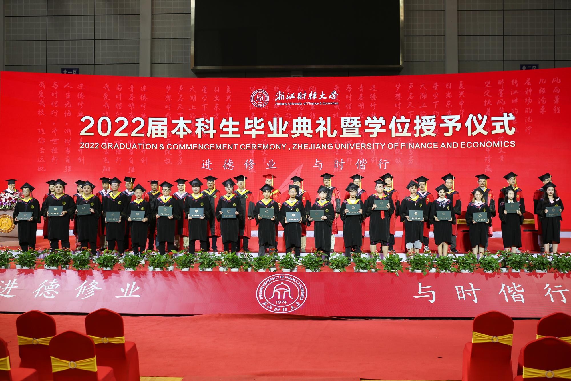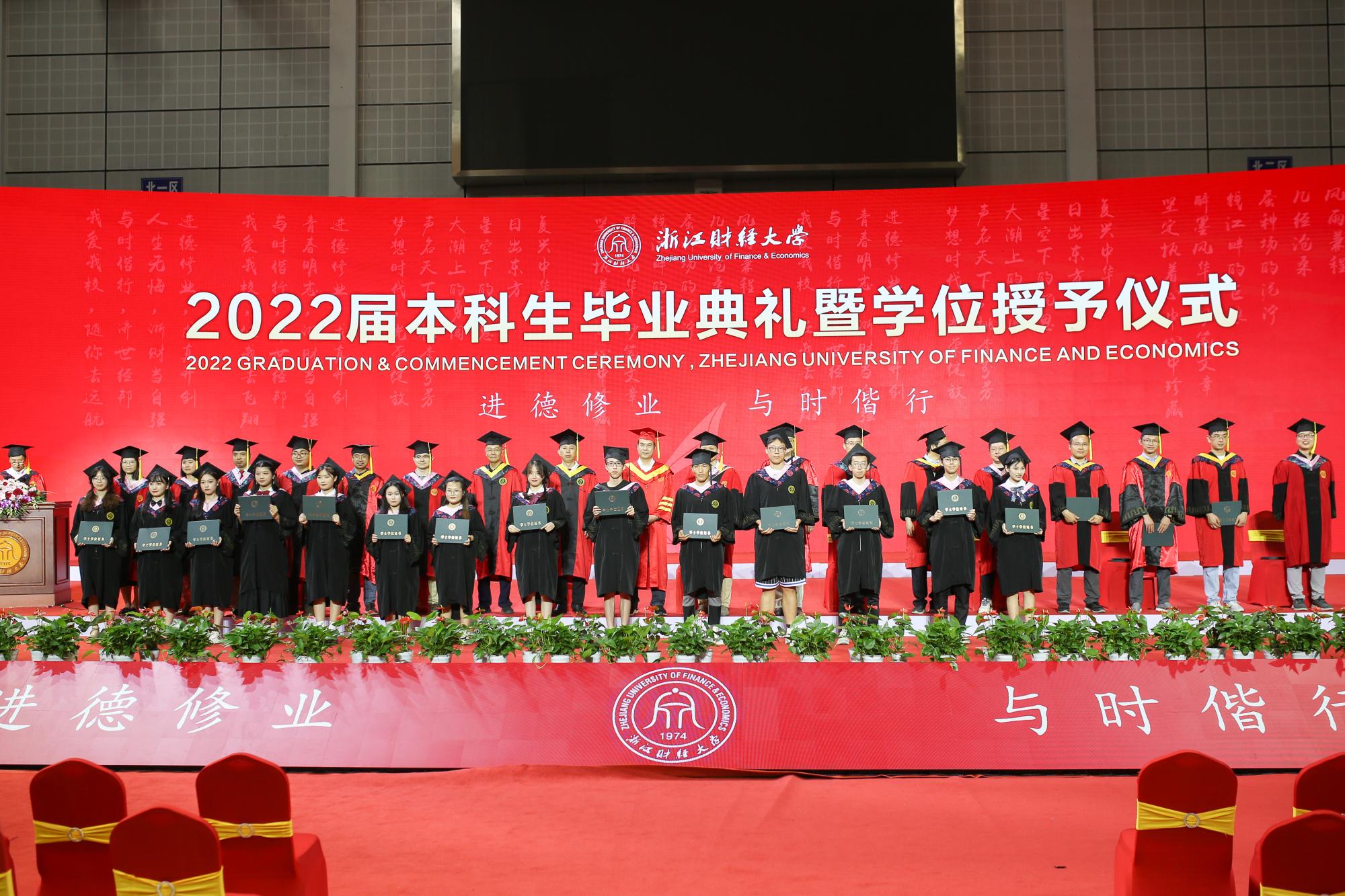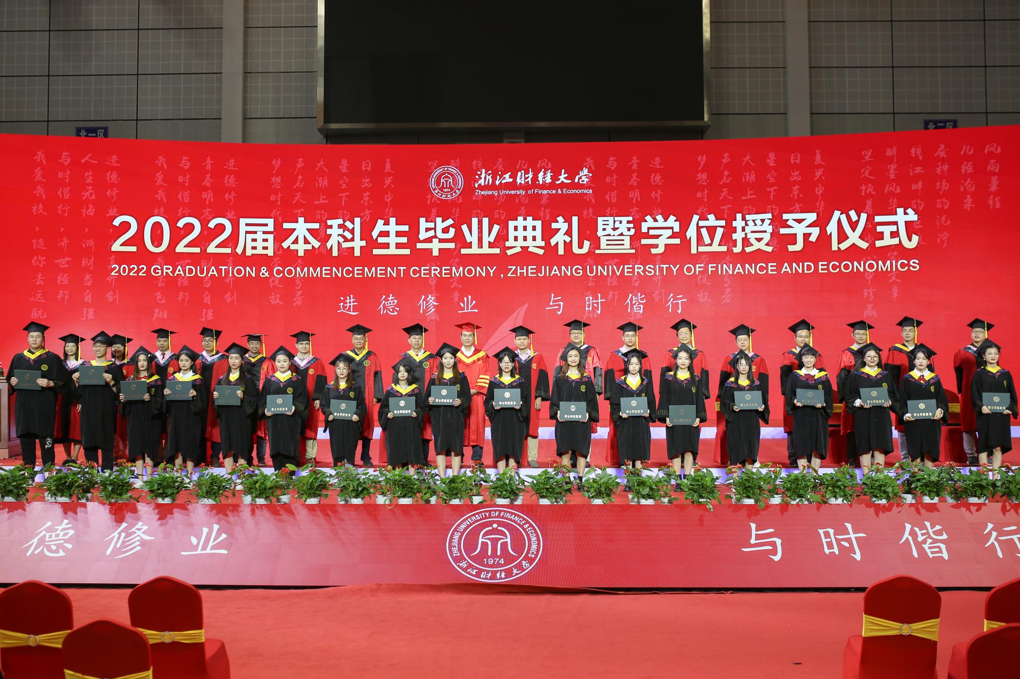 随后,毕业生依次上台接受老师颁发的学位证书,导师们为毕业生逐一拨穗正冠,授予学位,合影留念,衷心祝贺他们顺利毕业,祝愿他们在未来前程锦绣,为母校争光。毕业生们也纷纷表达了对母校老师们的感恩与祝福,表示将不负母校的辛勤培育和殷切期望,践行“进德修业,与时偕行”的校训,积极投身国家建设,努力成为有用之才。