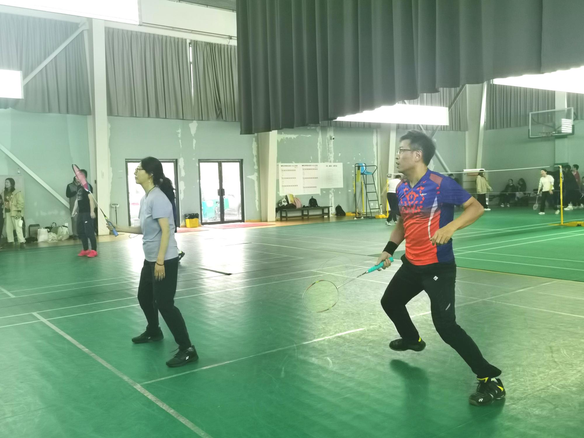 金年会参赛教师认真备战,细致筹谋,早早来到比赛球场热身练习。球场上认真比赛,充分展现球技水平;球场外细致了解对手,合理安排比赛场次。赛场上激烈的氛围从场上蔓延到欢呼加油的每一位观众身上,每一分比分的变动都引来一阵兴奋的欢呼,每一次精彩的扣杀都赢得一波热烈的掌声。
