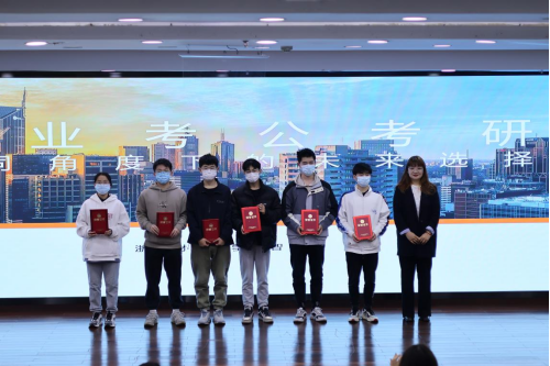 随后,大会举行了信智学院高顿考研专项奖学金颁奖仪式,高顿考研浙江分校校长崔亚飞老师为金年会考取研究生的优秀学生代表颁奖并合影留念。