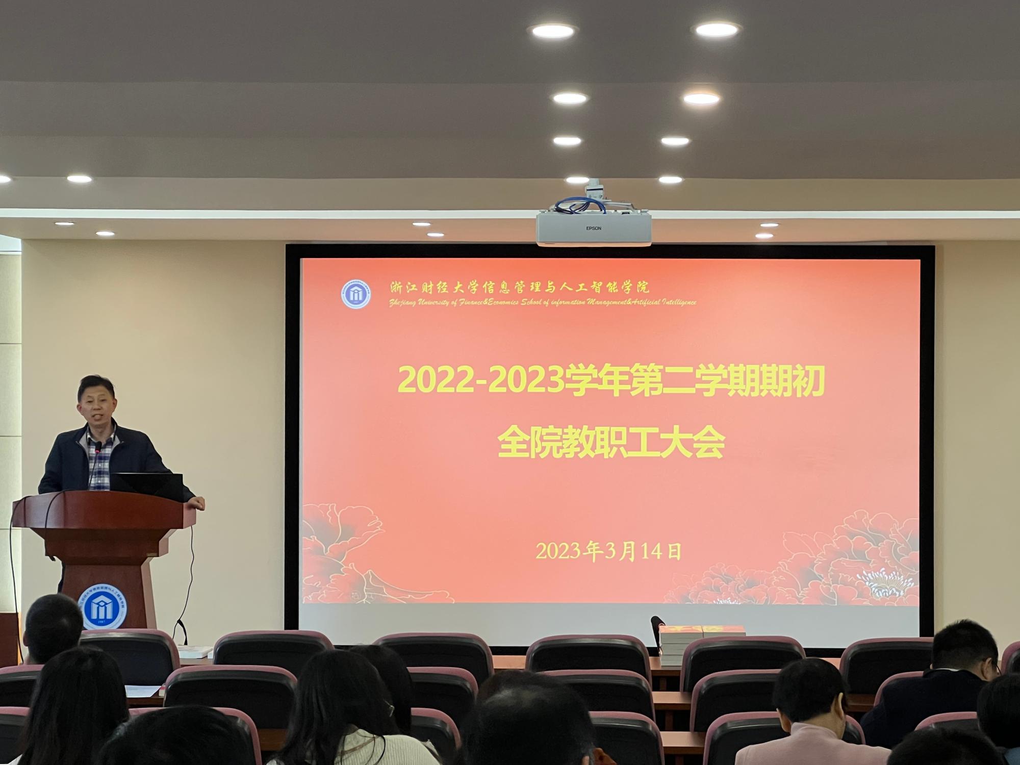 3月14日下午,金年会在9-302组织召开2022 -2023年第二学期期初教职工集中大会,学院全体教职工参加了此次大会。