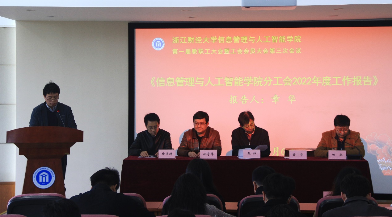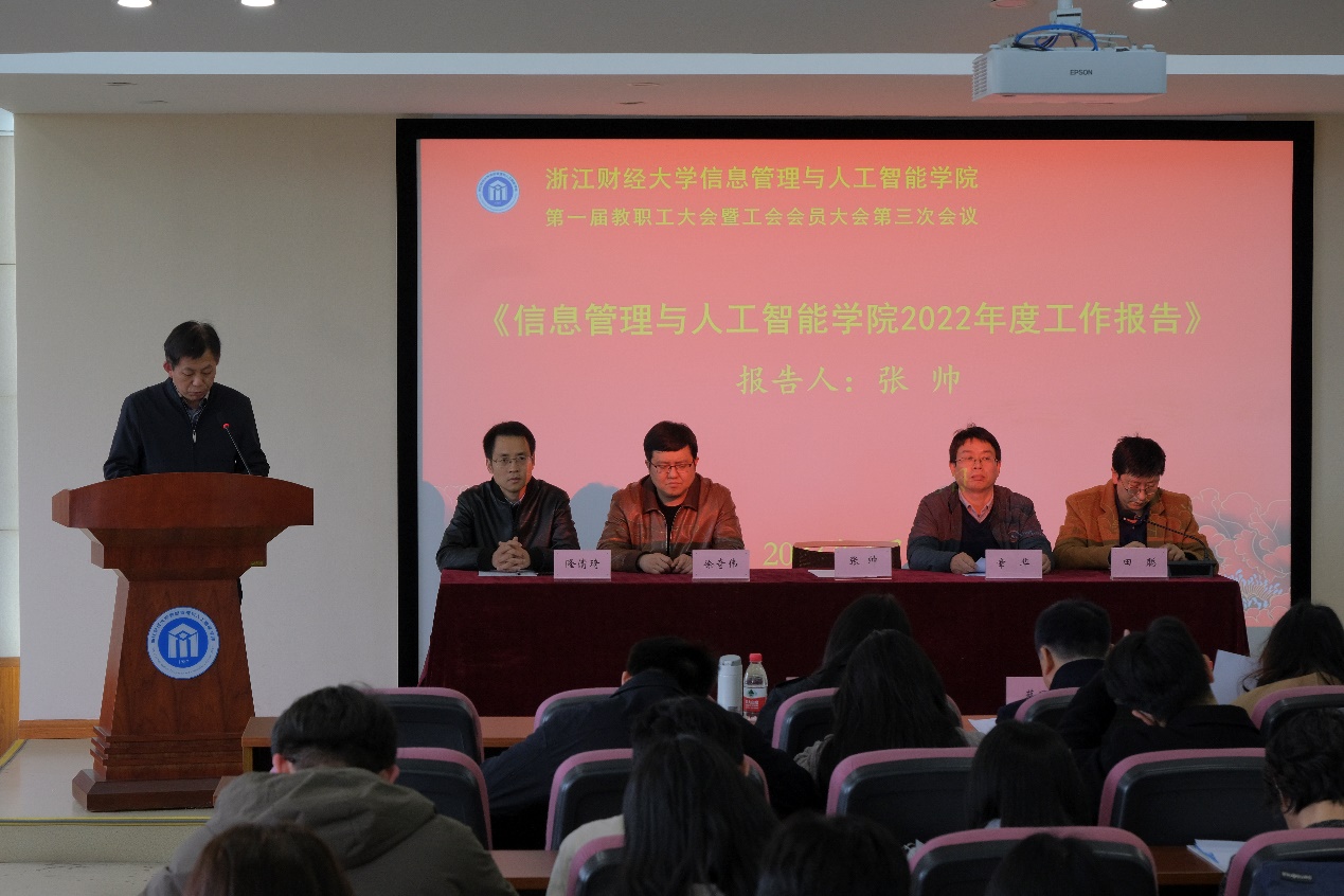 4月6日下午,金年会jinnianhuicom信息管理与人工智能学院第一届教职工大会暨工会会员大会第三次会议在学院302报告厅隆重举行。学院全体教职工参加了大会,大会由学院党委副书记田聪主持。