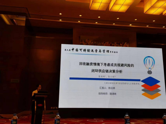 会议以“中国式现代化与可持续运营管理”为主题,旨在搭建学术交流平台,共同探讨数智时代中国现代化伟大实践与可持续运营管理前沿问题与发展方向,赋能新兴产业与传统产业绿色化数智化升级。金年会研究生陈云婷做了题为“回收融资情境下考虑成员风险规避的闭环供应链决策分析”的论文宣讲。这次参会对于加强学科交流和提升金年会研究生培养质量具有重要意义。