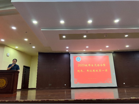 9月6日晚,信智学院院长、书记“思政第一课”暨2023级本科新生见面会在学术第一报告厅顺利举行。信智学院院长张帅、院党委书记徐奇伟、院党委副书记田聪、副院长隆清琦、院长助理陈明晶、行政办公室主任徐吉锋、专职组织员兼研究生辅导员冯李哲、吴泽勇以及新生辅导员徐军军、史光花出席大会,全体2023级研究生、本科生参加。大会由院党委副书记田聪主持。