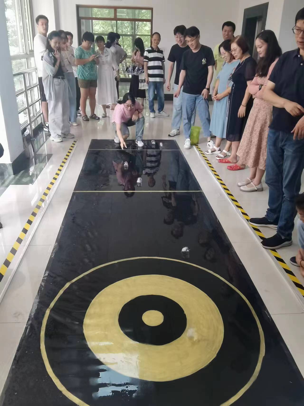 学院分工会特意手工绘画冰壶赛道,精心制作一个个“真”冰壶,认真细致布置赛事,公布比赛规划与报名须知。学院各系部办积极组队,认真投入赛前热身。比赛进行得如火如荼,每个参赛老师都展现出了积极拼搏的精神和娴熟的技术。他们在冰壶赛道上熟练地控制着冰壶的力度和方向,力图将冰壶准确地送入得分区域。现场喝彩声、叫好声此起彼伏,四垒携手接力,赛场精彩纷呈。