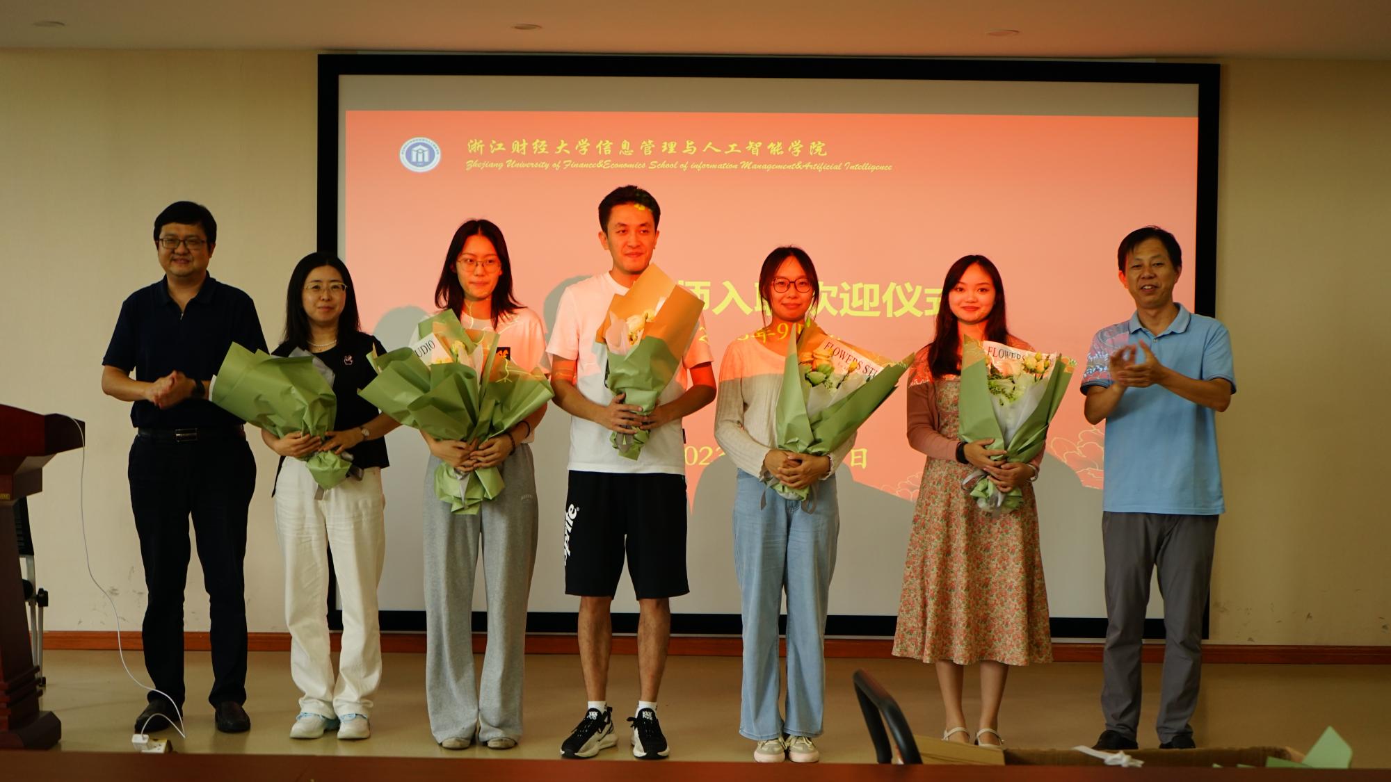 会上院长向全体同事介绍新入职的几位同事,并为他们举办了入职欢迎仪式。