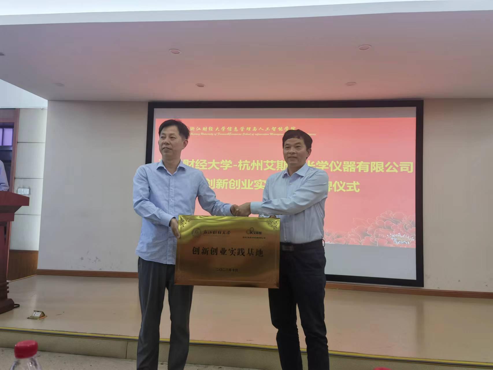 信智学院院长张帅为与会师生隆重介绍知名校友王建平。杭州艾斯基光学仪器有限公司由信智学院2008届电子商务专业校友王建平创办,凭借良好的信誉和优良的品质在业界颇具影响力。王建平校友感恩老师,心系母校,多年来不断提供就业岗位给学弟学妹实习就业,积极支持学生创新创业项目,2022年慷慨捐赠30万元设立“艾斯基—登峰”基金,用于奖励信智学院考取名校博士的应届研究生毕业生。结合学院人才培养需要,学院决定在杭州艾斯基光学仪器有限公司建立创新实践基地,希望学院学生通过实践训练提前学习技术应用和行业发展情况,通过接触先进企业文化更好地锻炼沟通能力,树立正确价值观。