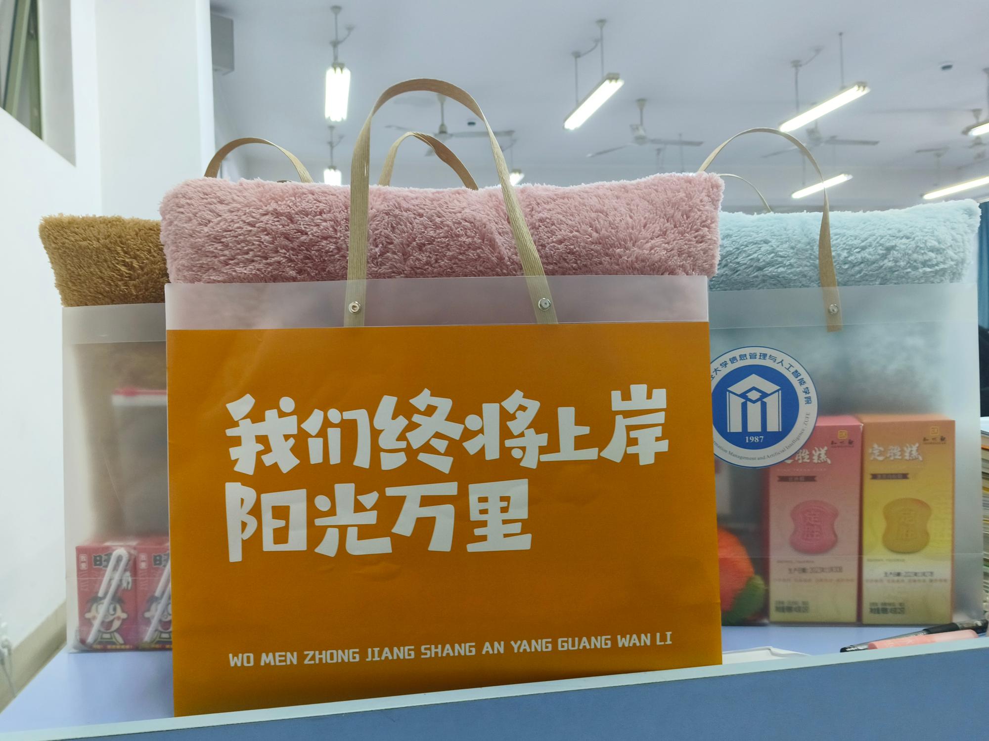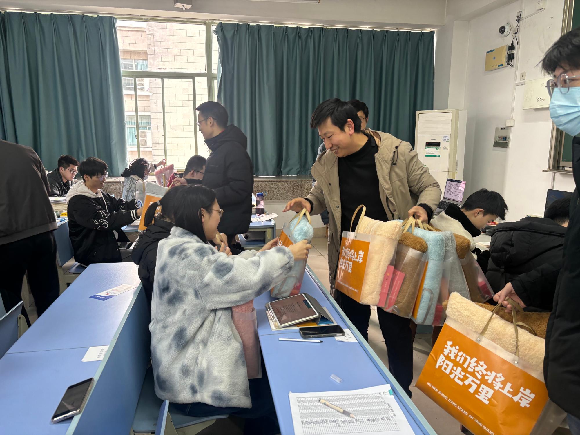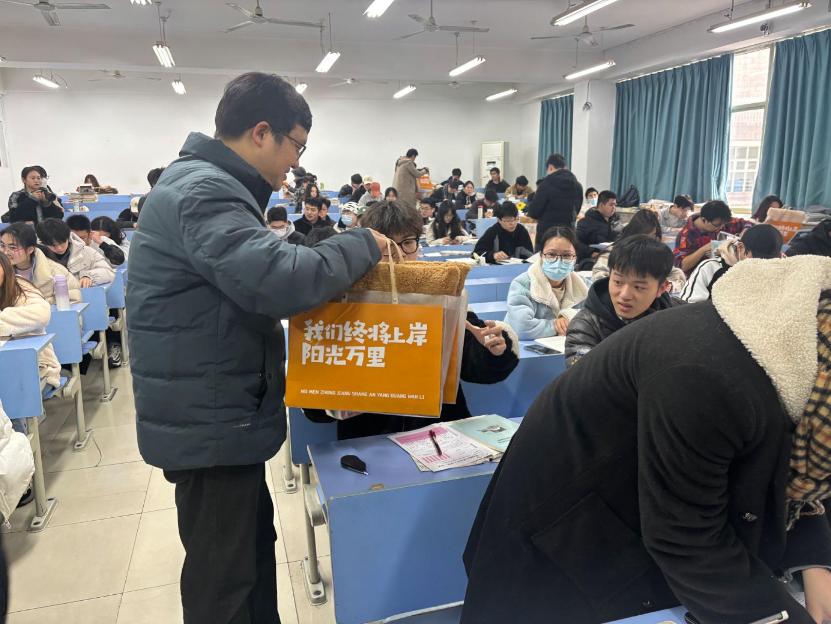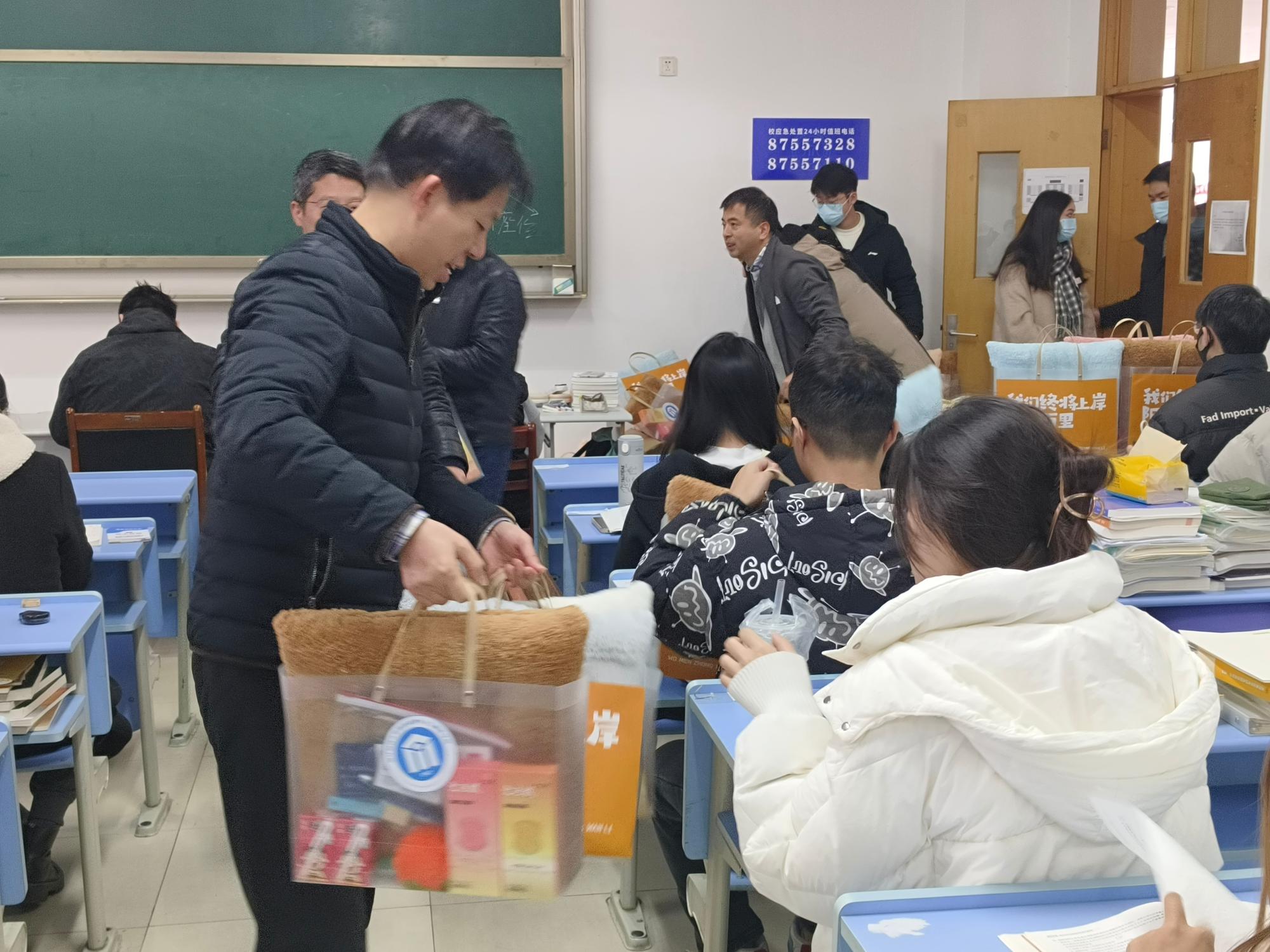 随后,老师们为同学们发放了考研文具和专属冲刺加油包:定胜糕、“柿柿如意”小配件、“金榜题名”文具套装……象征着圆满和丰收,承载着学院对学子们满满的祝福,体现了院系领导和老师们对考研同学的关怀,让考研学子倍感温暖。