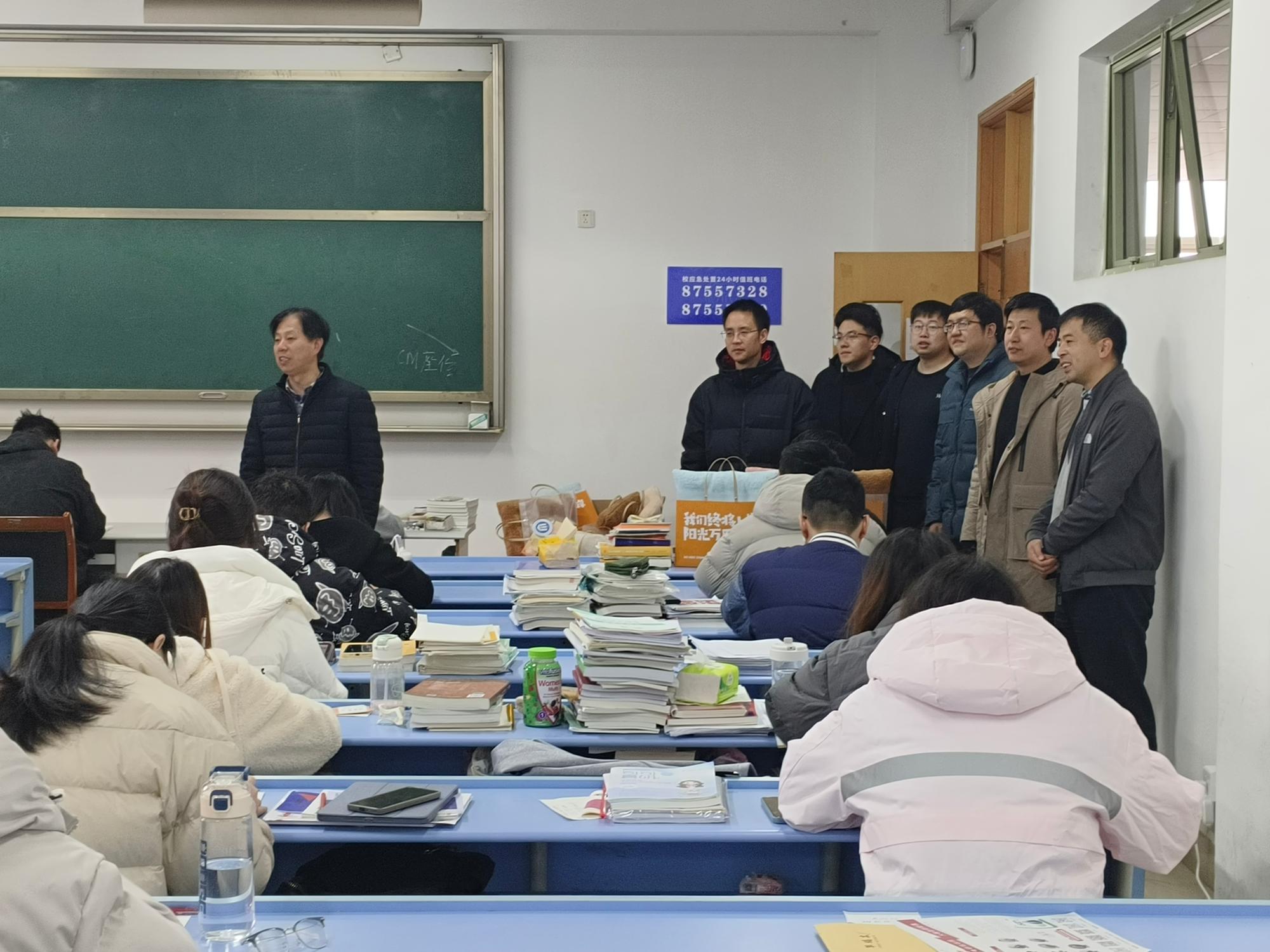 披星戴月,尽看春花,考研冲刺的号角已然吹响。为鼓舞金年会学子考研士气,坚定冲刺信心,传递冬日祝福,舒缓备考压力。12月13日上午信息管理与人工智能学院院长张帅、院党委书记徐奇伟、院党委副书记田聪、副院长隆清琦、院长助理陈明晶、党委委员章华、行政办主任徐吉锋及学院辅导员洪宝华、徐军军、马硕、吴泽勇、史光花老师一行前往考研教室,为即将踏上考场的学子送去鼓励和祝福。