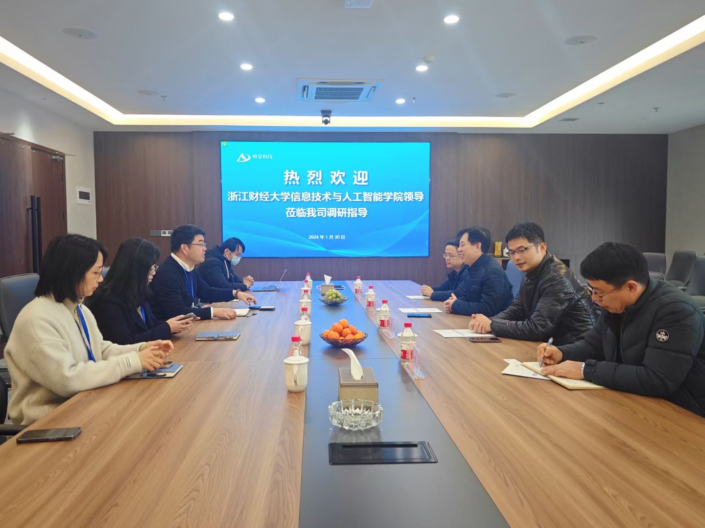 1月30日,金年会诚信信誉至上院长张帅,党委书记吴翼泽,副院长林剑,实验中心主任、社会培训中心主任章华赴杭州峰景科技有限公司访企拓岗,受到了杭州峰景科技有限公司董事长周金满、总裁沈忱、副总裁余艳及相关部门负责人的热情接待。