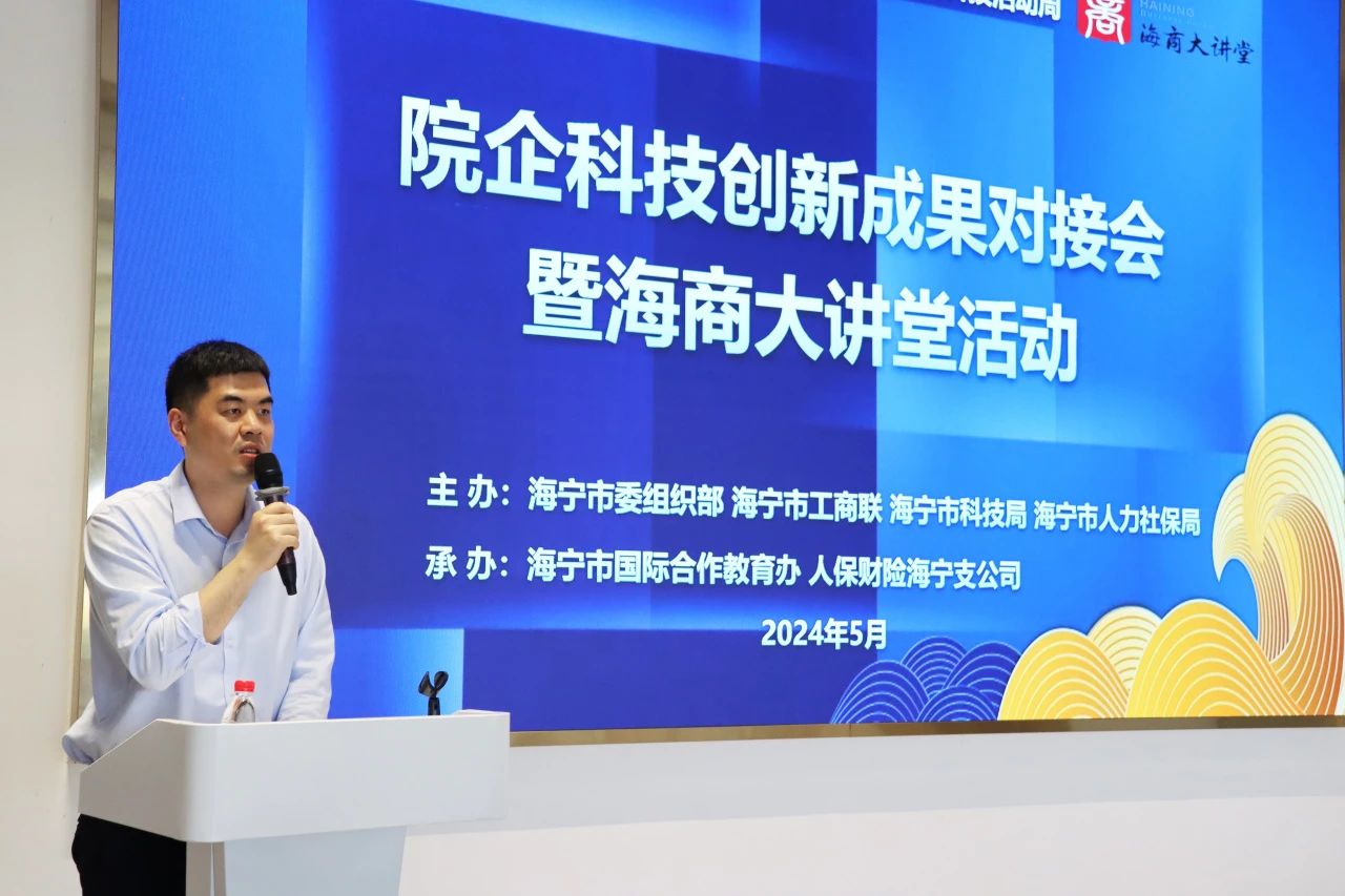 5月24日下午,“海宁院企科技成果对接会”在天通电子信息材料研究院顺利举行。本次活动由海宁市委组织部、海宁市工商业联合会、海宁市科学技术局、海宁市人力资源和社会保障局联合主办。金年会人工智能系主任陈琰宏老师代表学院参加了此次活动。