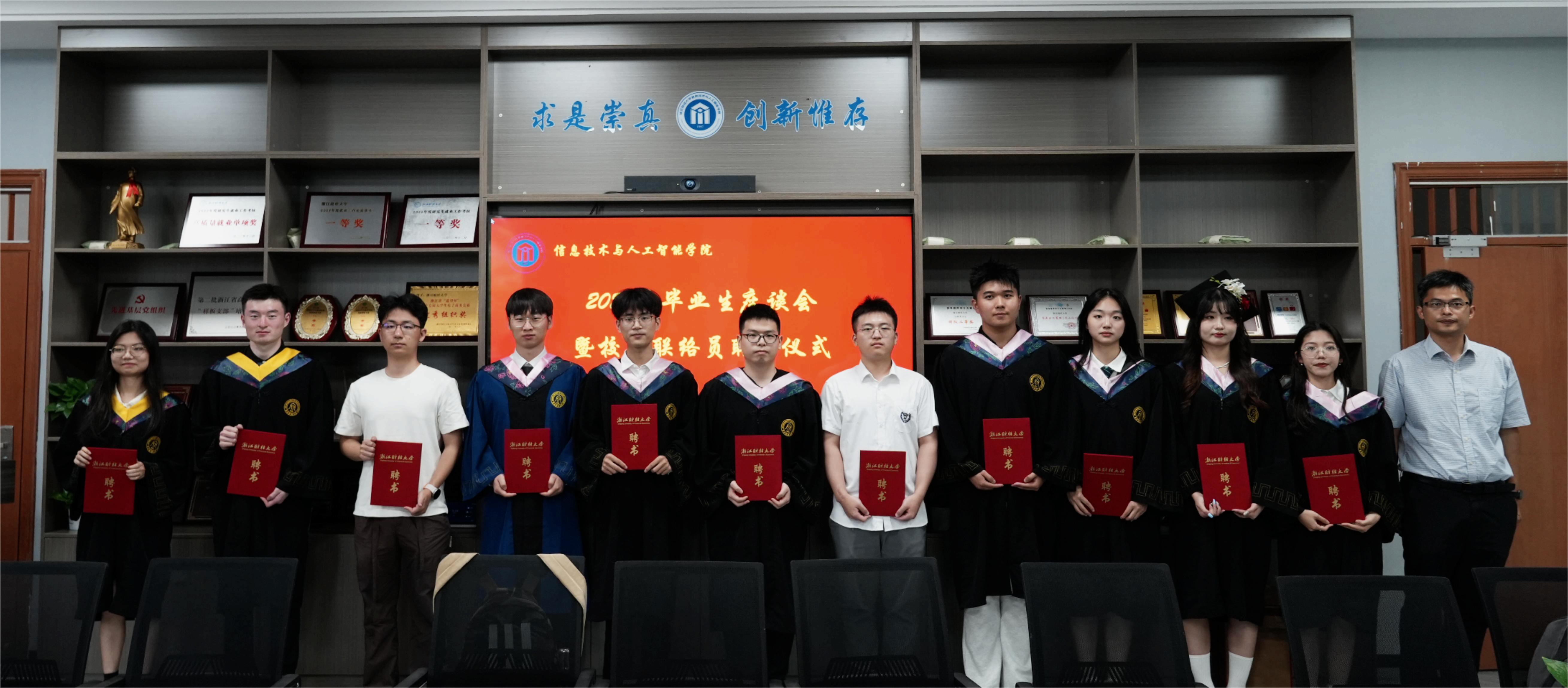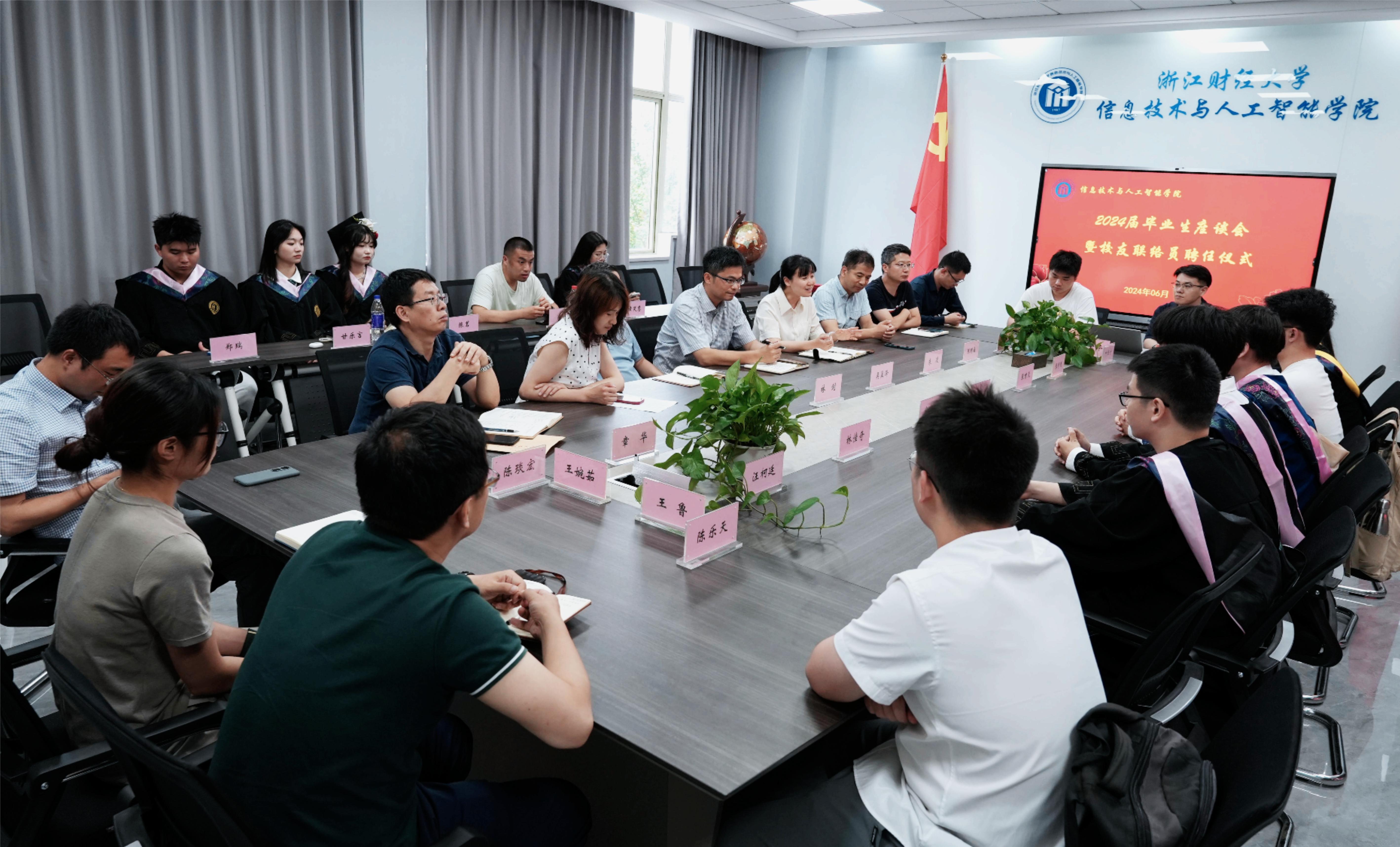 6月18日下午,信智学院2024届毕业生座谈会暨校友联络员聘任仪式在9号楼404会议室召开,学院党委书记吴翼泽,副院长林剑、朱凌,党委副书记吴轶韵,院长助理陈明晶,实验中心主任、社会培训中心主任章华,院办主任徐吉锋,学办主任洪宝华,各系部主任及教师代表,毕业生辅导员出席本次座谈会。2024届校友联络员、学生干部代表等参加本次座谈会。会议由吴轶韵老师主持。