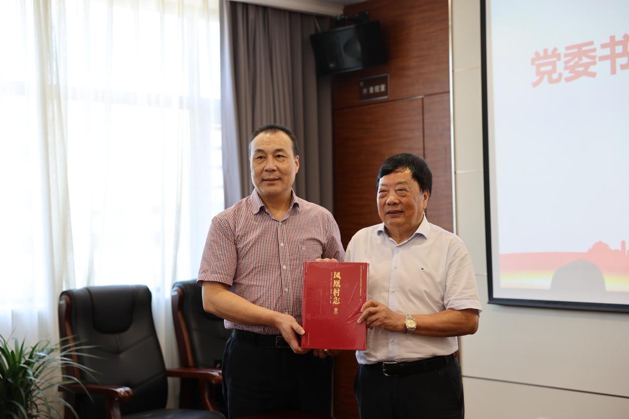 会后,胡岳法向学校赠送《凤凰村志》,党校办、校团委、信智学院等负责人陪同走访。