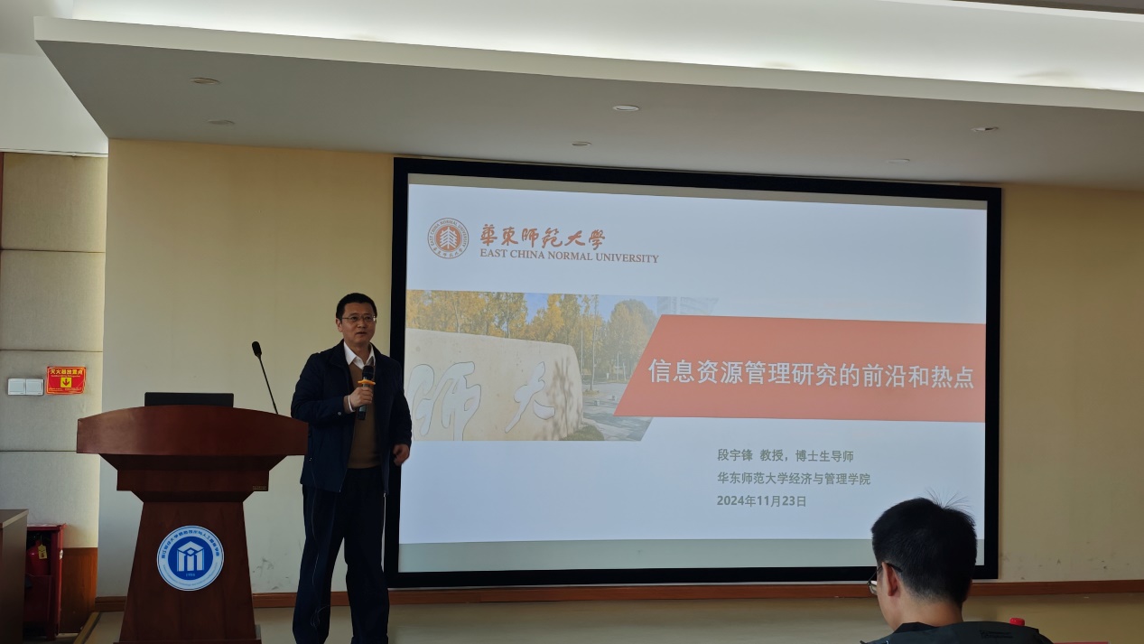 段宇锋教授在讲座中分享了信息资源管理研究在智慧图书馆的背景下,如何通过先进的技术手段高效组织与管理知识资源,提升用户的获取和使用体验。以及在面对谣言与虚假信息的挑战时,如何通过智能化信息筛选和用户教育,促进准确、可信的信息传播。同时,还分析了信息行为与数据资源的深度融合,如何引导用户形成正确的信息使用习惯,提升整体信息素养,确保信息生态的健康发展。