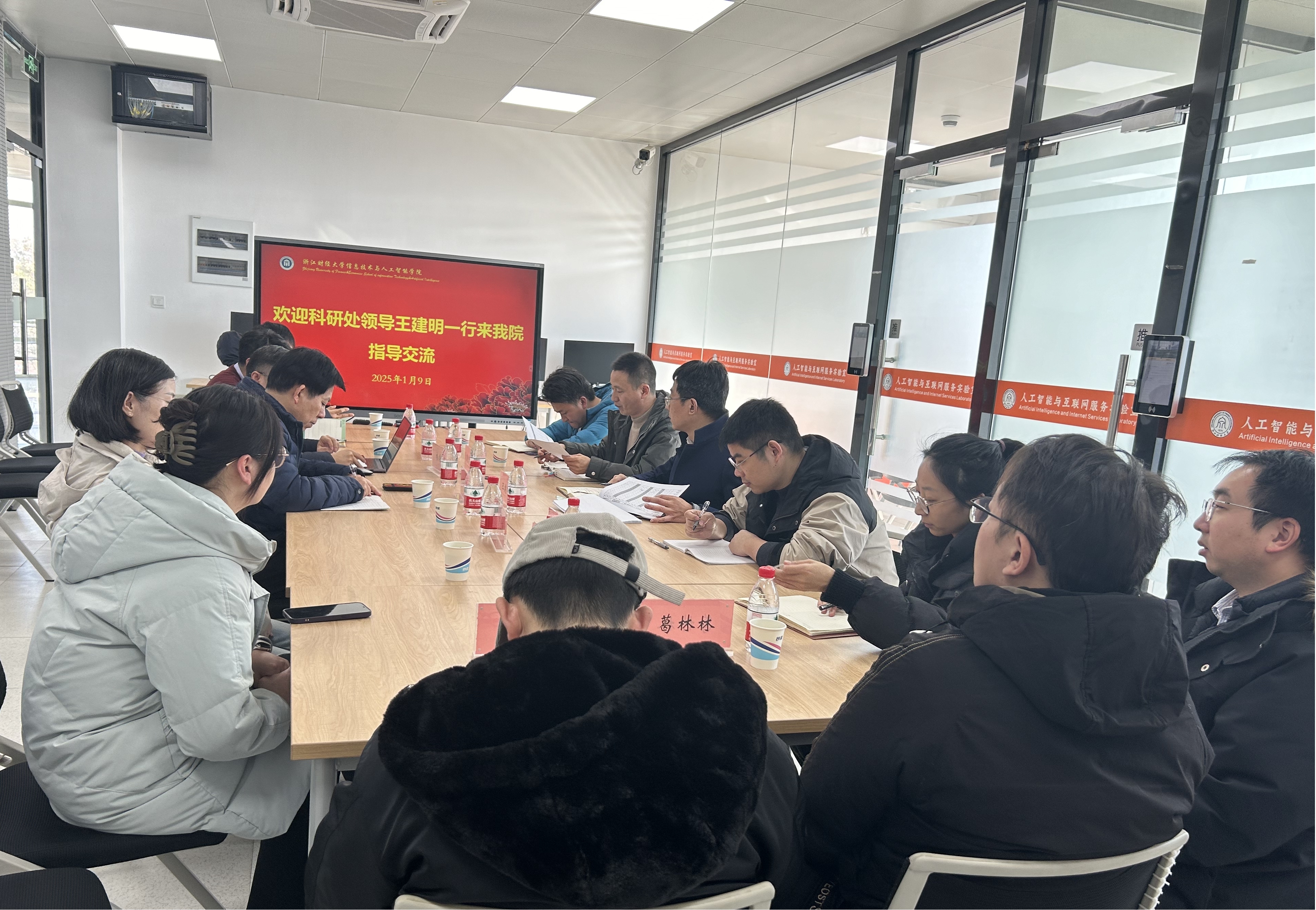 2025年1月9日下午,校科研处处长王建明、副处长裴志军、专聘副职邓年奇及项目管理迮勇等一行四人莅临金年会,就科研管理和课题组织情况进行了深入的调研指导,学院院长张帅、副院长林剑和课题申报教师代表参加了会议,会议由副院长林剑主持。