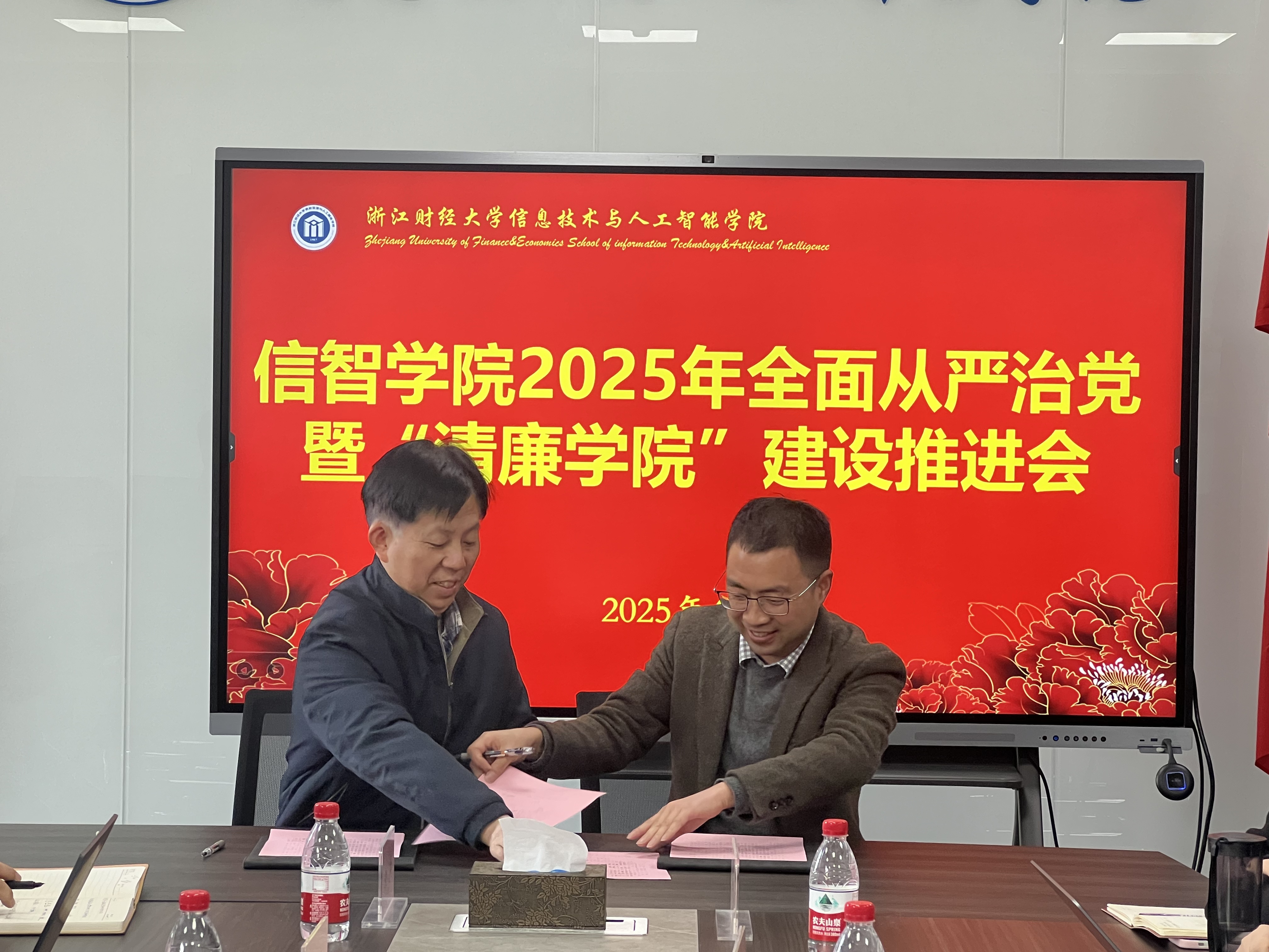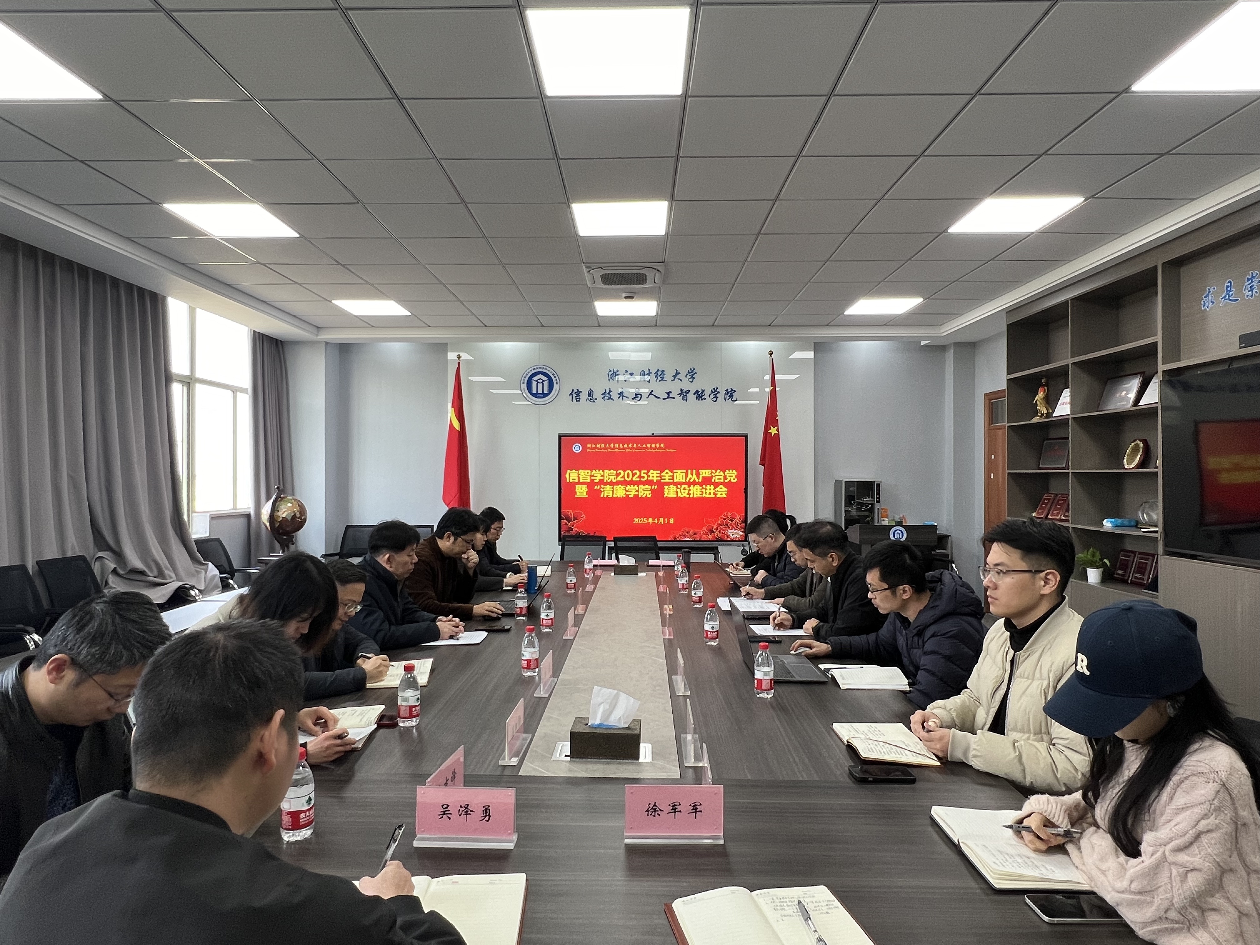 4月1日下午,学院党委召开2025年全面从严治党暨“清廉学院”建设推进会,传达2025年全省教育系统工作会议暨全面从严治党工作会议精神和学校全面从严治党暨“清廉浙财”建设推进会会议精神,贯彻落实省委教育工委的相关要求,深入学习贯彻习近平总书记关于党的建设的重要思想、关于党的自我革命的重要思想,全面落实第二十届中央纪委四次全会和省纪委十五届四次全会精神。学院党政班子成员、党委委员、纪委委员、系主任和党支部书记参加会议。会议由学院党委书记吴翼泽主持。