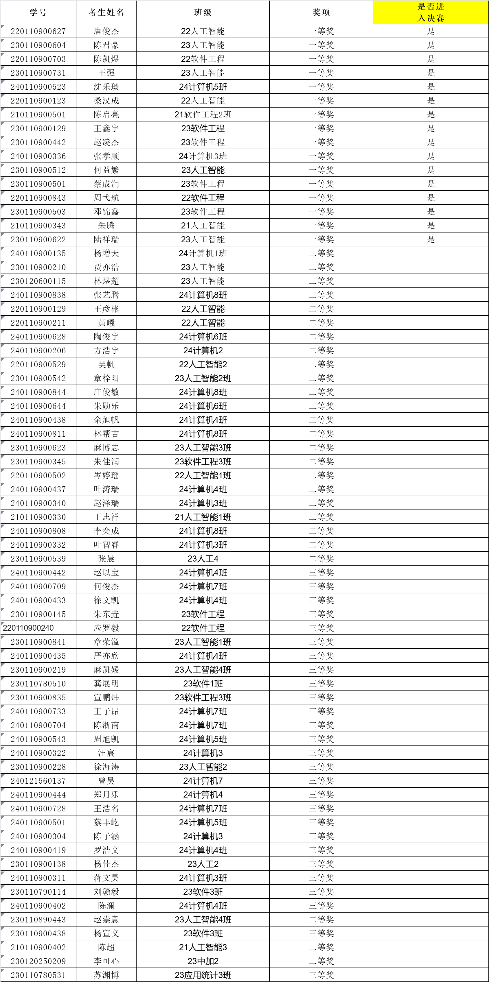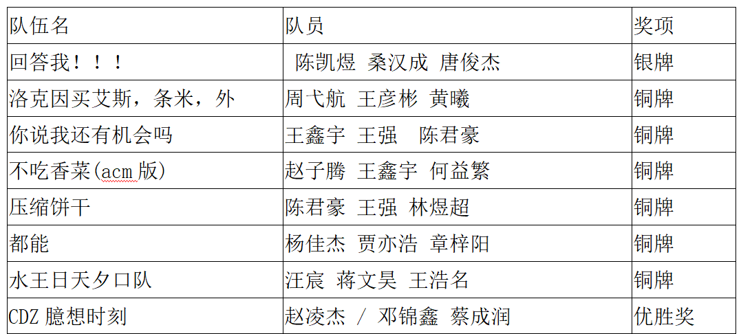 第25届浙江省大学生程序设计竞赛获奖名单: