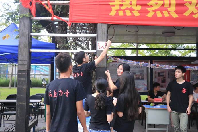 同学们辛勤工作,不知疲倦的布置迎新场地