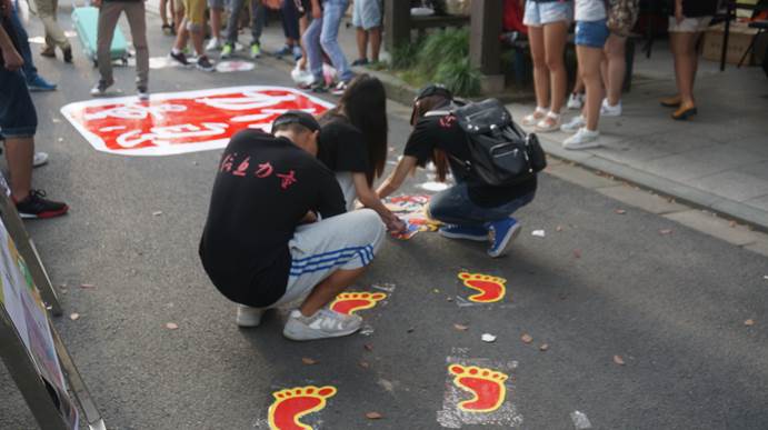 除了常规的场地布置、新生手册、文化衫外,金年会还在迎新形式上推陈出新,营造了独特的文化氛围。志愿者们不仅身着“信息力量”字样的衣服,而且在脸上也下了一番功夫,醒目的红色logo“信息力量”,给新生们和家长们留下了深刻的印象,在报道完后,每位新生都被邀请在场地前的签名板上签上自己的姓名并与陪同来得家长合影,选取自己喜欢的、印有财大美景以及学长学姐寄语的明信片,留下自己人生最难忘回忆;除此以外,现场更有无人机缓缓飞起,为新生入学助力!