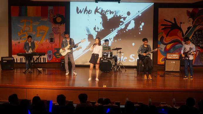 本次大赛分为三轮:第一轮选手两两分组,由评委直接打分,得分前10者直接晋级第二轮;第二轮10位选手依次演唱,评委打分最终决定三名选手晋级最后一轮。伴随着DoubleS乐队激情四射的《who knew》开场表演,信息学院“对9当歌”决赛正式拉开帷幕。